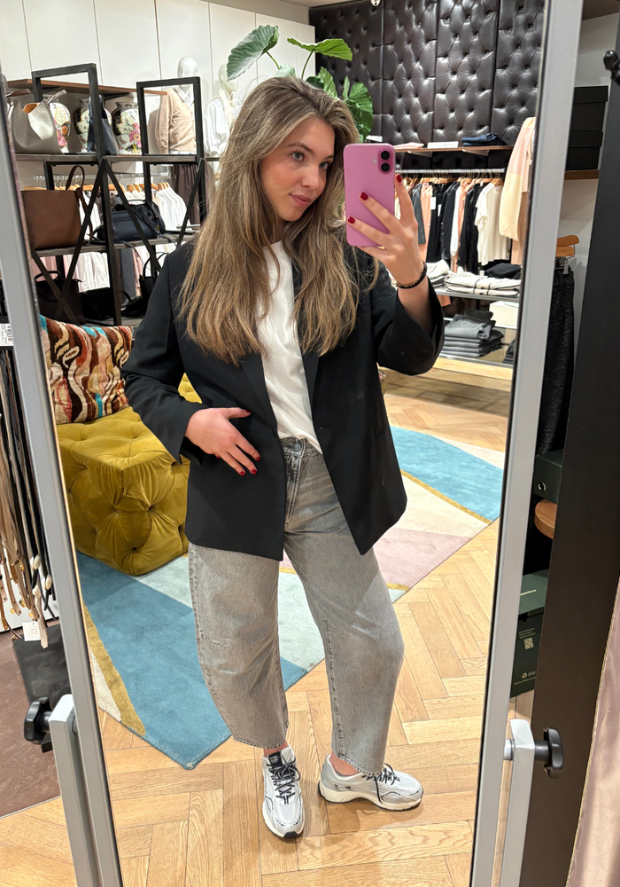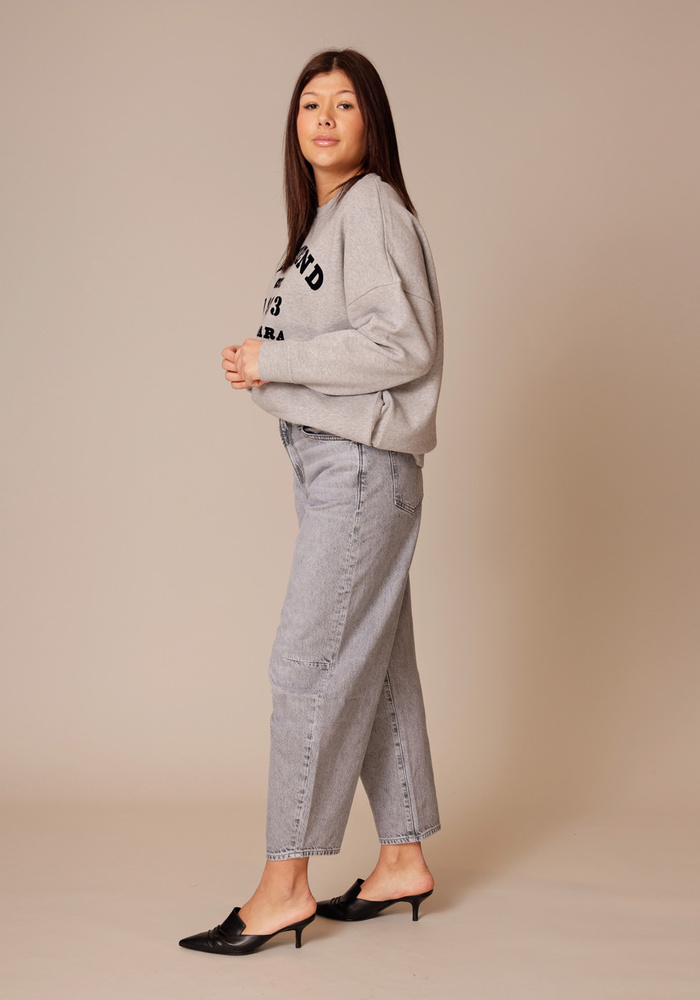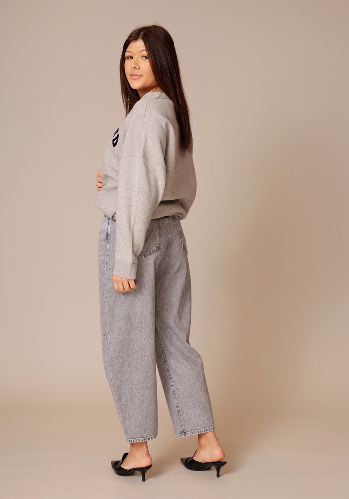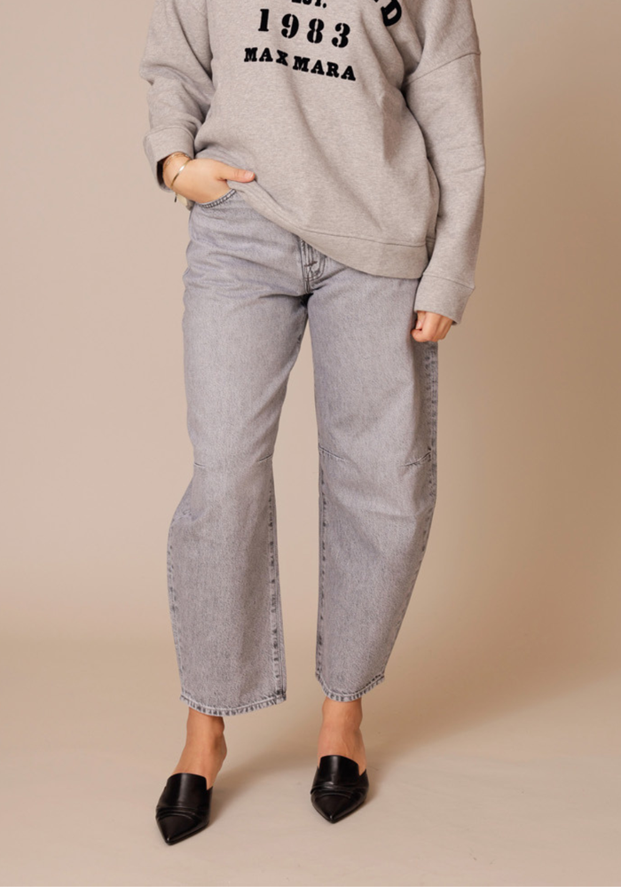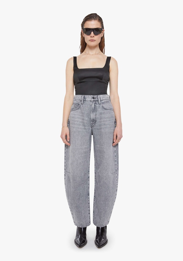 The Pony Keg Ankle jeans van Mother is een barrel-leg jeans van SNACKS! met een uitgesproken, experimenteel silhouet. De superhoge taille en gebogen, taps toelopende pijpen zorgen voor een moderne fit tot op de enkel. Gemaakt van stevig 100% katoen in Earl Grey: een verwassen grijstint met speelse details zoals een pretzel-knoop en candy-geïnspireerde rivets. Gedurfd, tijdloos en voor wie durft.