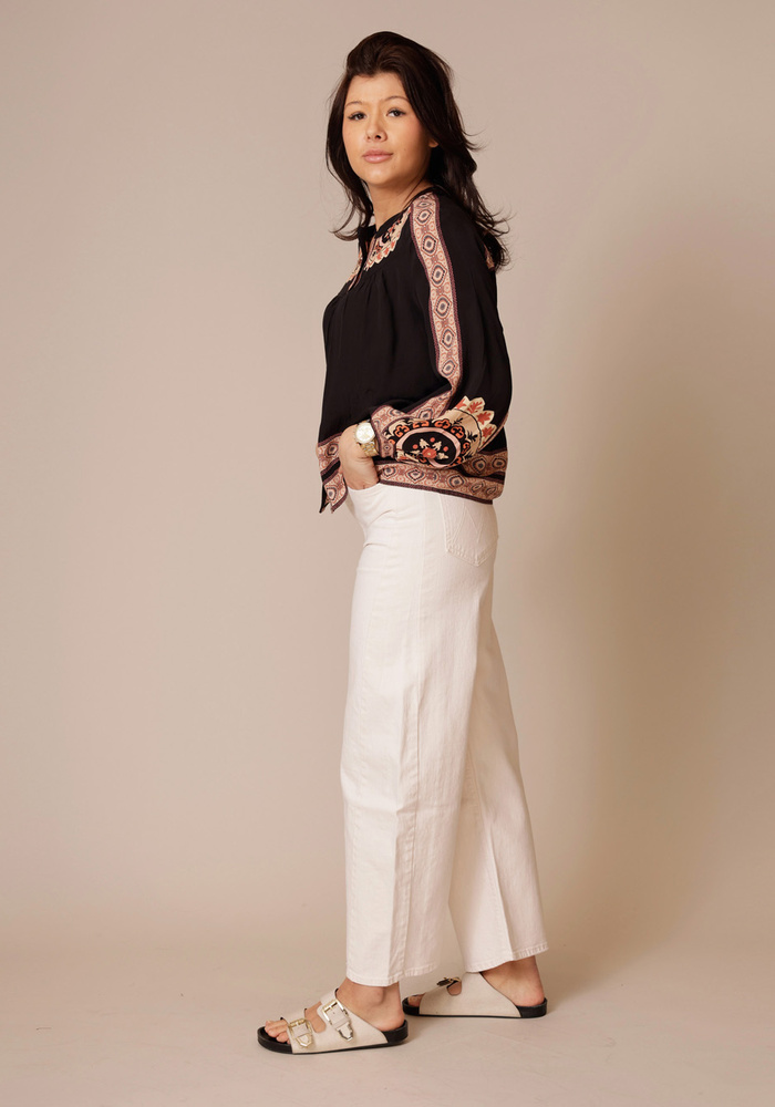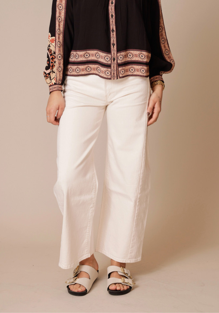 De Half Pipe Ankle Jeans van Mother is een super high-waisted jeans met een brede, gebogen pijp, een binnenbeenlengte van 74 cm en een nette zoom. Gemaakt van een hoogwaardige katoenmix met een vleugje stretch, in de kleur Act Natural: een romig wit met bijpassende hardware.