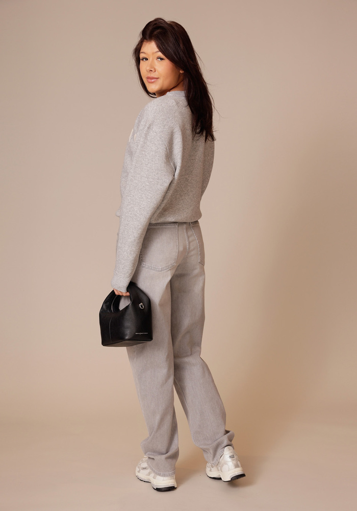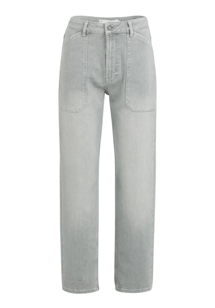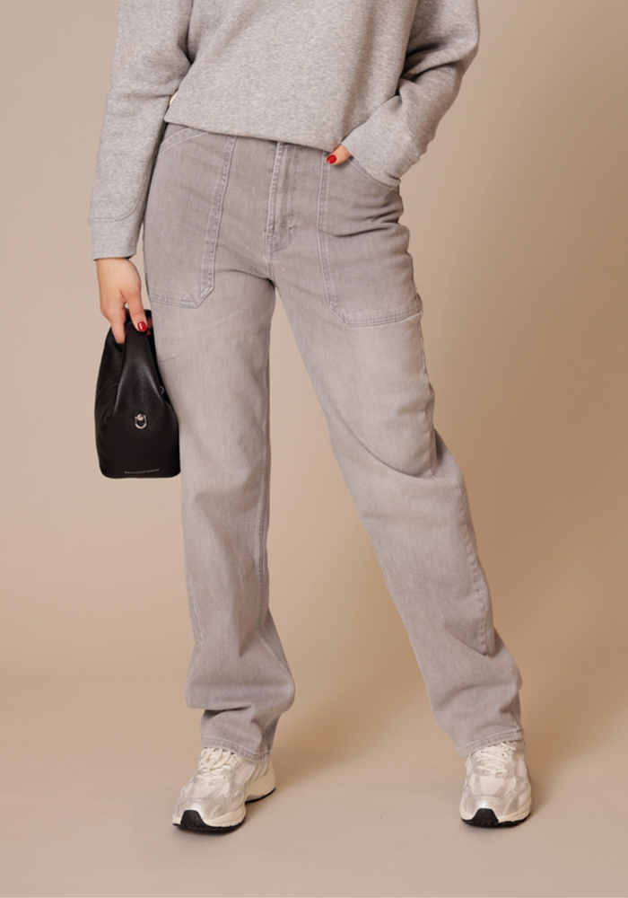 Denim cargo jeans in een stevige kwaliteit met een zachte wassing. Het model heeft een hoge taille, laag kruis en een losse pasvorm met rechte, wijde pijpen. De opgestikte zakken aan de voorkant zorgen voor een stoere uitstraling.