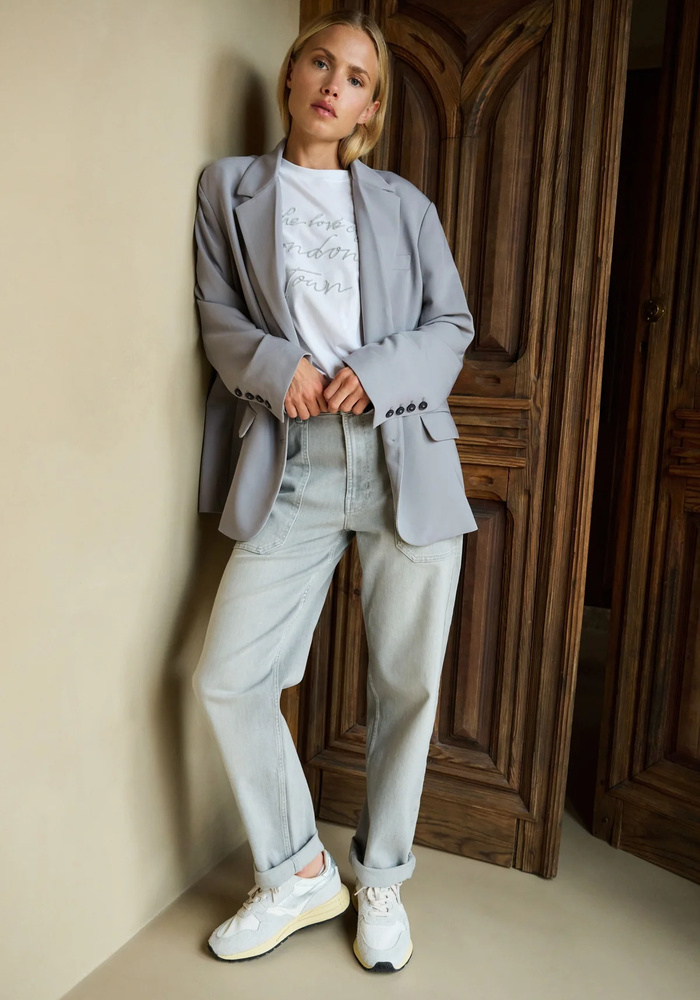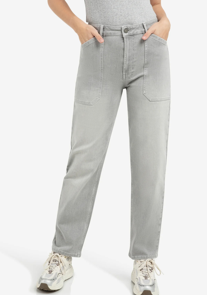 Denim cargo jeans in een stevige kwaliteit met een zachte wassing. Het model heeft een hoge taille, laag kruis en een losse pasvorm met rechte, wijde pijpen. De opgestikte zakken aan de voorkant zorgen voor een stoere uitstraling.