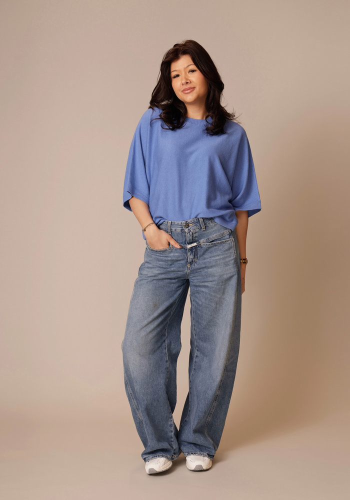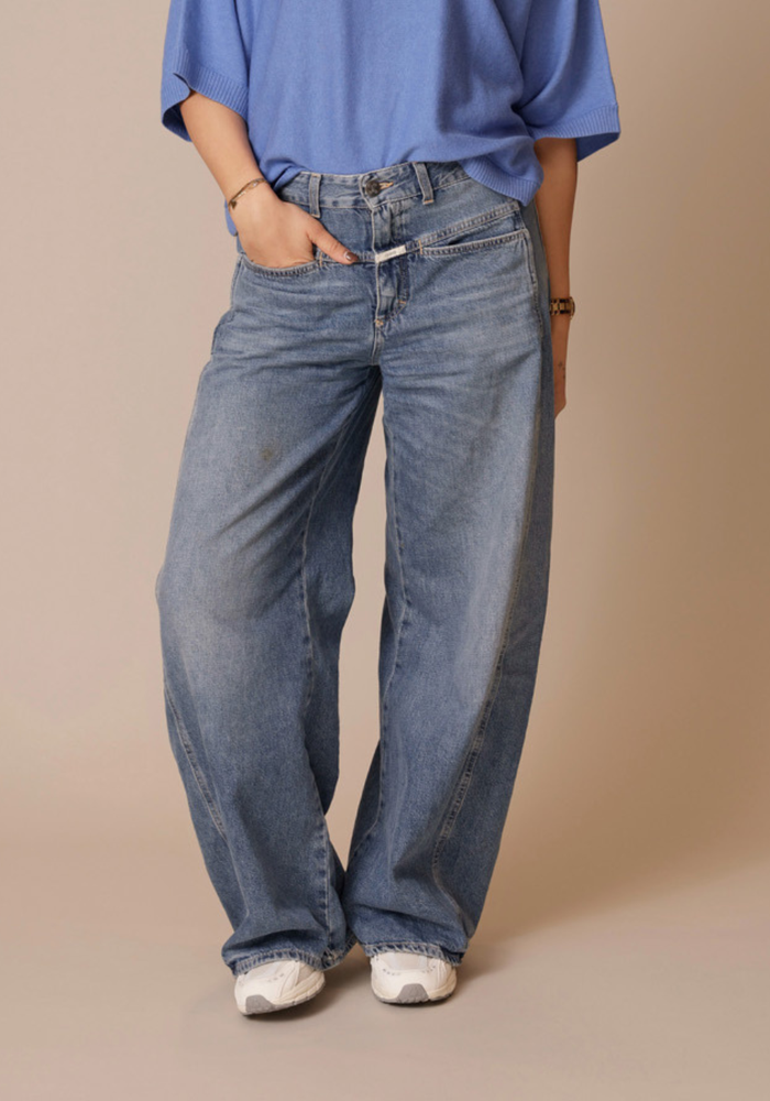 De Tori-X barrel-leg jeans heeft een middelhoge taille, iconische X-zakken en versetzte zijnaden voor een eigentijdse uitstraling. De hoogwaardige denim met salt-and-pepper effect geeft de jeans een authentieke jaren ’80-stijl.