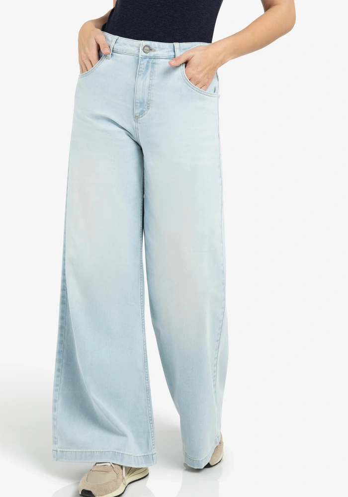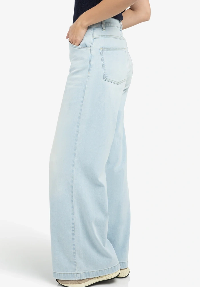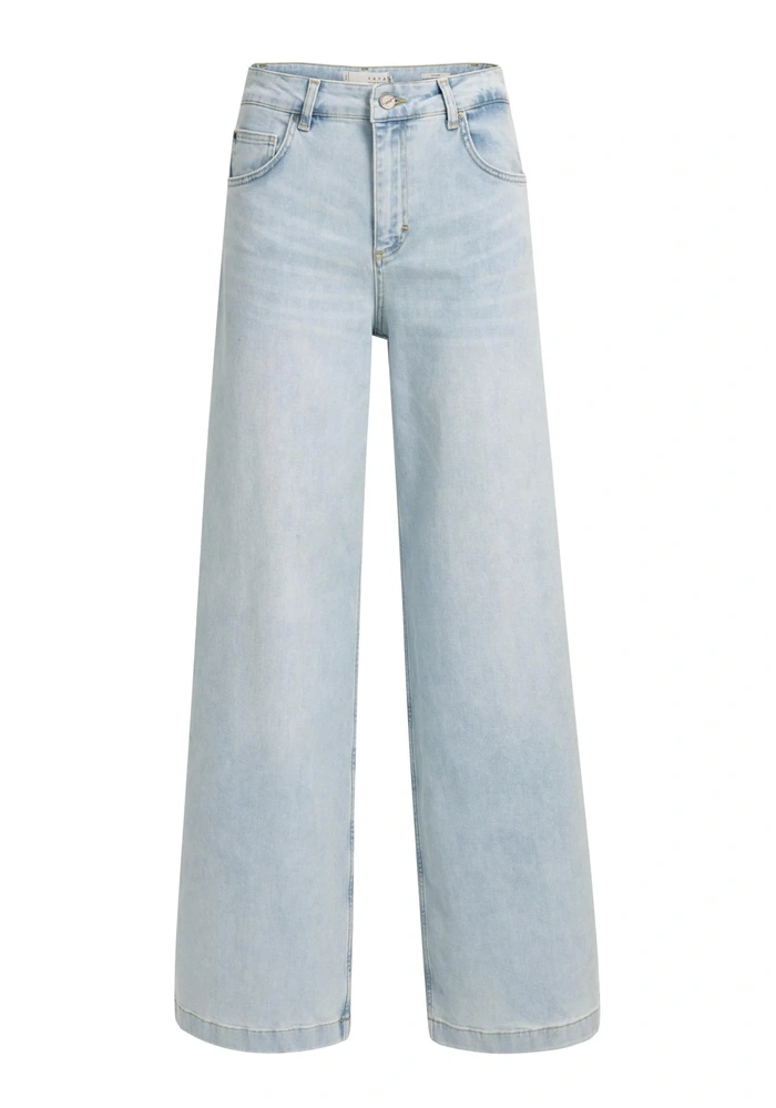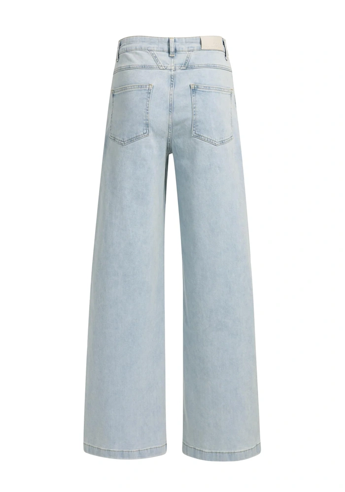 Deze jeans heeft een hoge taille, een relaxte pasvorm en extra wijde pijpen voor een eigentijdse look. Gemaakt van zacht katoendenim en uitgerust met klassieke steekzakken en achterzakken. De lichte wassing geeft een frisse, casual uitstraling. Een perfecte keuze voor een comfortabele én stijlvolle outfit.