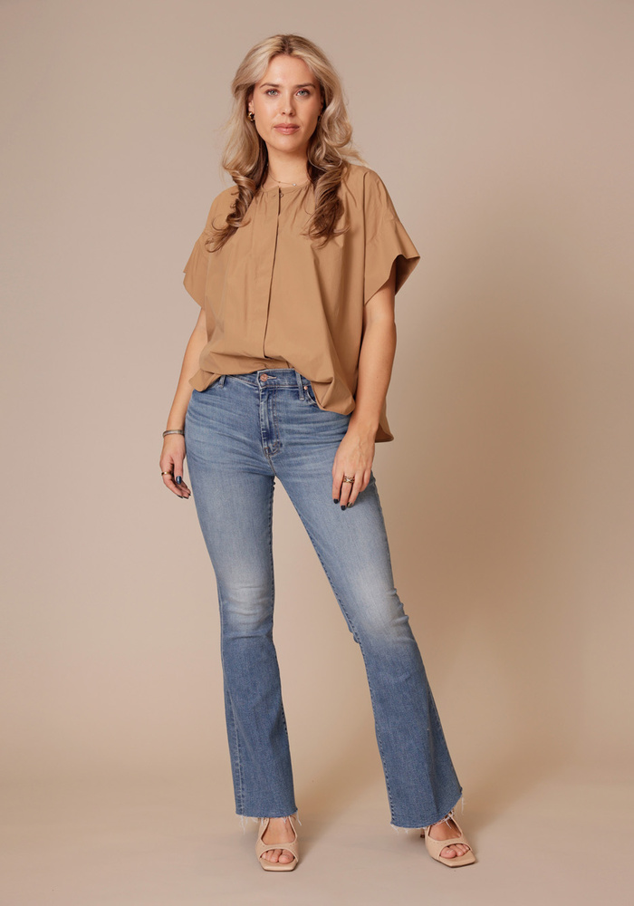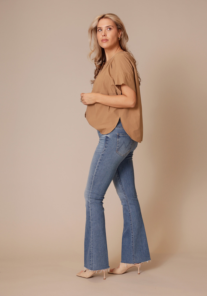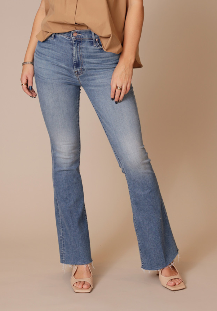 The Weekender fray jeans van Mother is een flared jeans met een middelhoge taille. De jeans heeft een knoop -en een ritssluiting en heeft een comfortabele pasvorm met stretch.