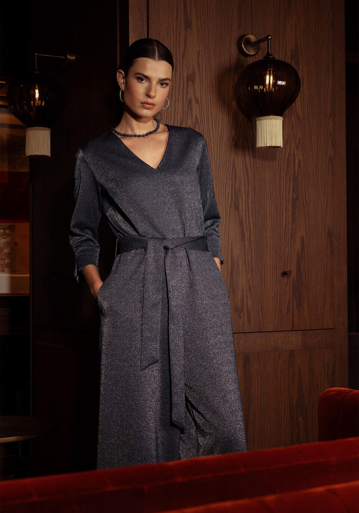 De Odessi sparkle jumpsuit van Studio Anneloes is ontworpen om in te stralen. De elegante V-hals, het subtiele zilverdraad en de vrouwelijke wide fit zorgen samen voor een chique, feestelijke look. Gemaakt van soepele, comfortabele stof — perfect om stijlvol én ontspannen de avond door te brengen.