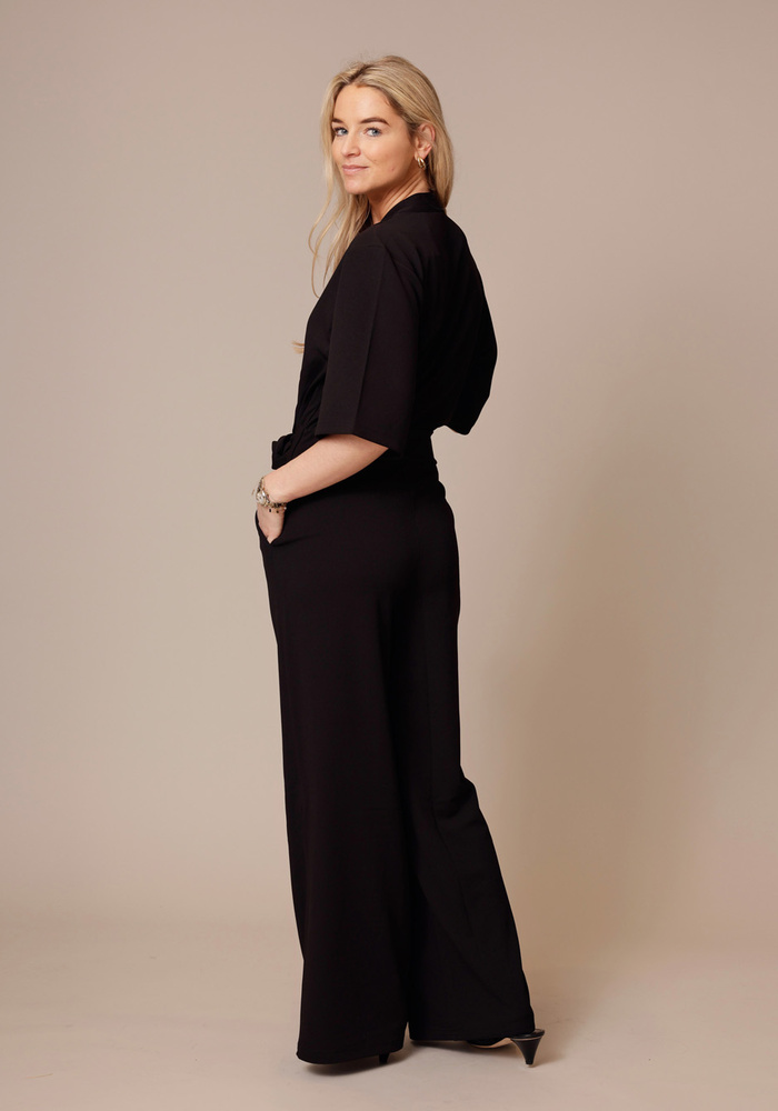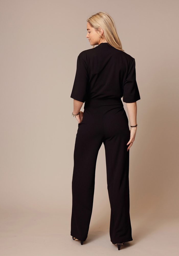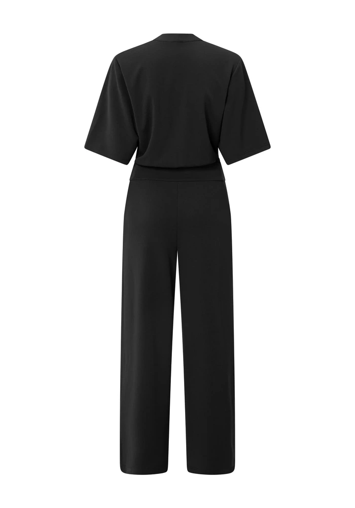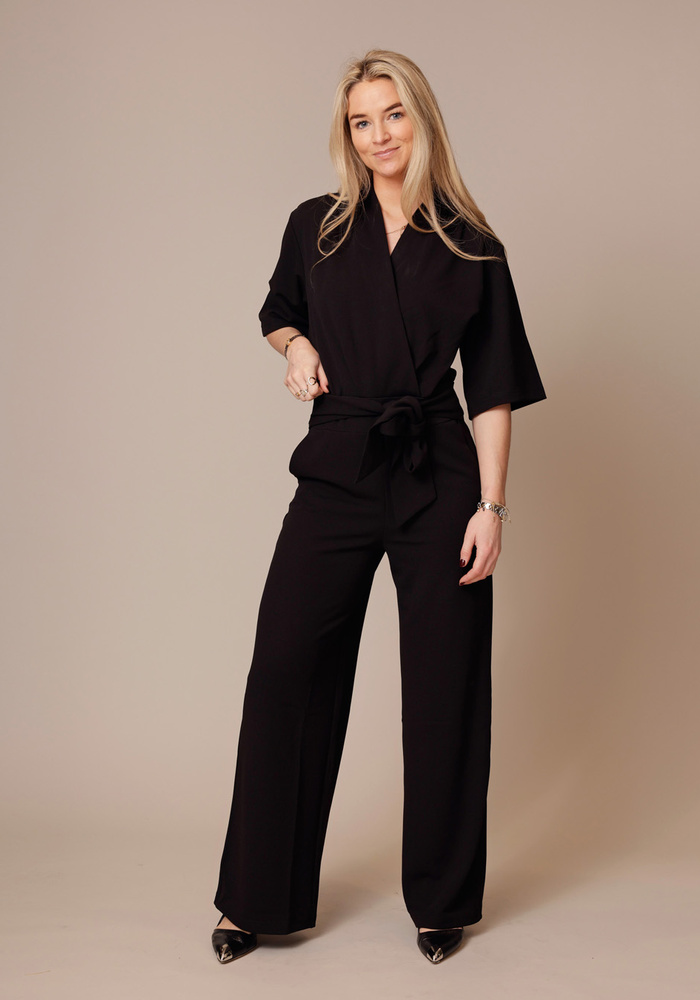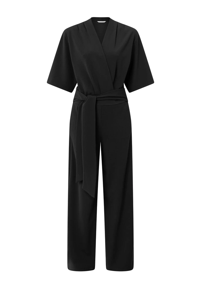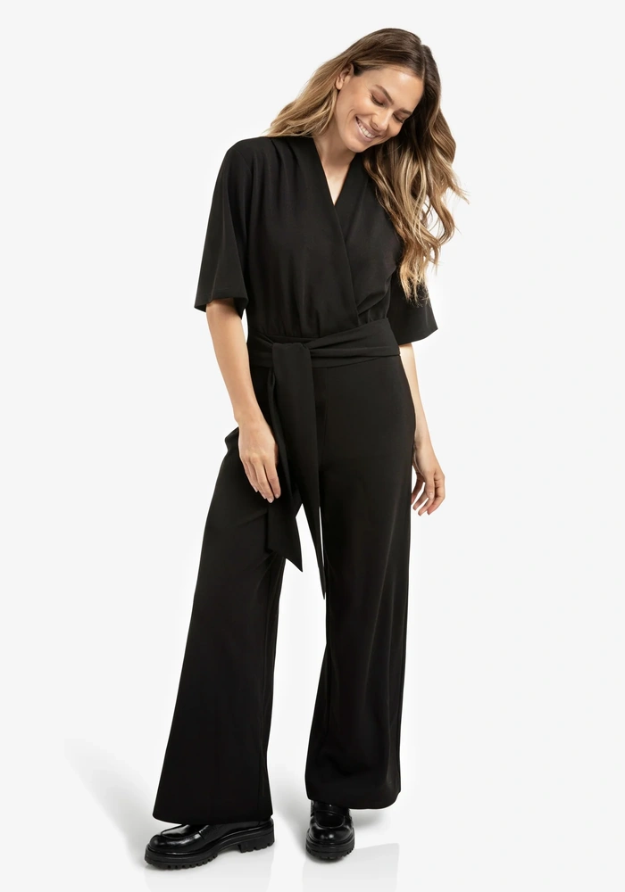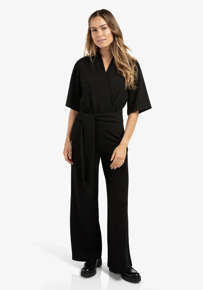 Deze comfortabele jumpsuit van zachte jersey heeft een overslaghals, korte mouwen en rechte pijpen. De bijpassende ceintuur accentueert het vrouwelijke silhouet. Perfect voor een casual maar verzorgde look.