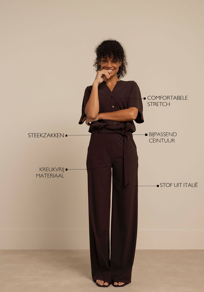 De Maggie Jumpsuit van Studio Anneloes is een veelzijdige en stijlvolle keuze die comfort en elegantie moeiteloos samenbrengt. De wide fit zorgt voor een krachtig silhouet met vloeiende lijnen, terwijl het bijpassende ceintuur en de Italiaanse Medium Travelstof een vrouwelijke look bieden met optimaal draagcomfort.