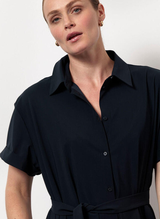 De Louna blouse dress van Studio Anneloes is luchtig, stijlvol en moeiteloos chique. De klassieke details en het bijpassende ceintuur zorgen voor een vrouwelijk silhouet, terwijl de kreukvrije Medium Travelstof perfect is voor warme dagen.