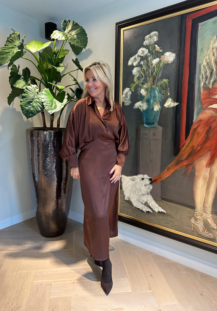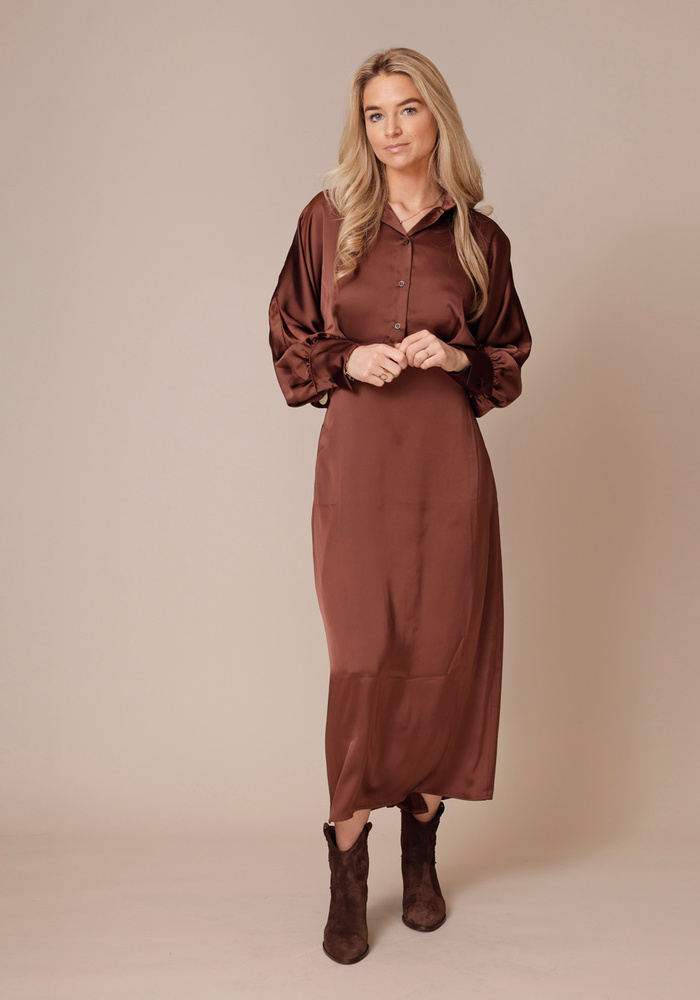De Helen dress van Bardou is een prachtige lange jurk met mooie vlinder mouwtjes. De jurk kan getailleerd worden voor of achter.