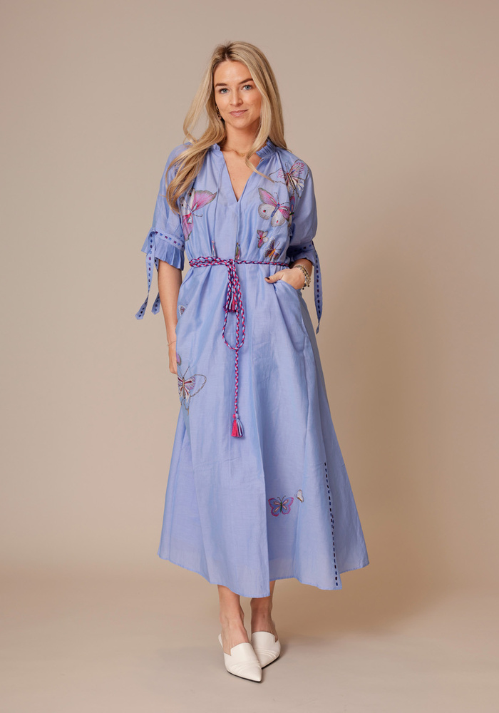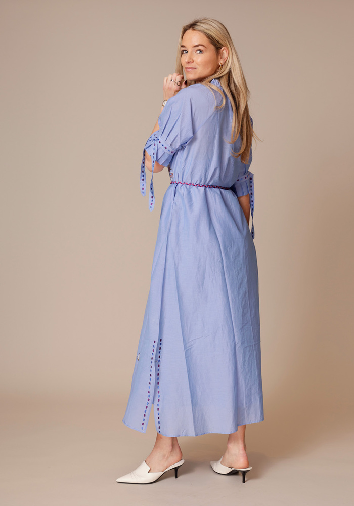 De Kylie shirt dress van Ornate is een maxi dress met korte pofmouwen en prachtige details. Komt met ceintuur en heeft steekzakjes.