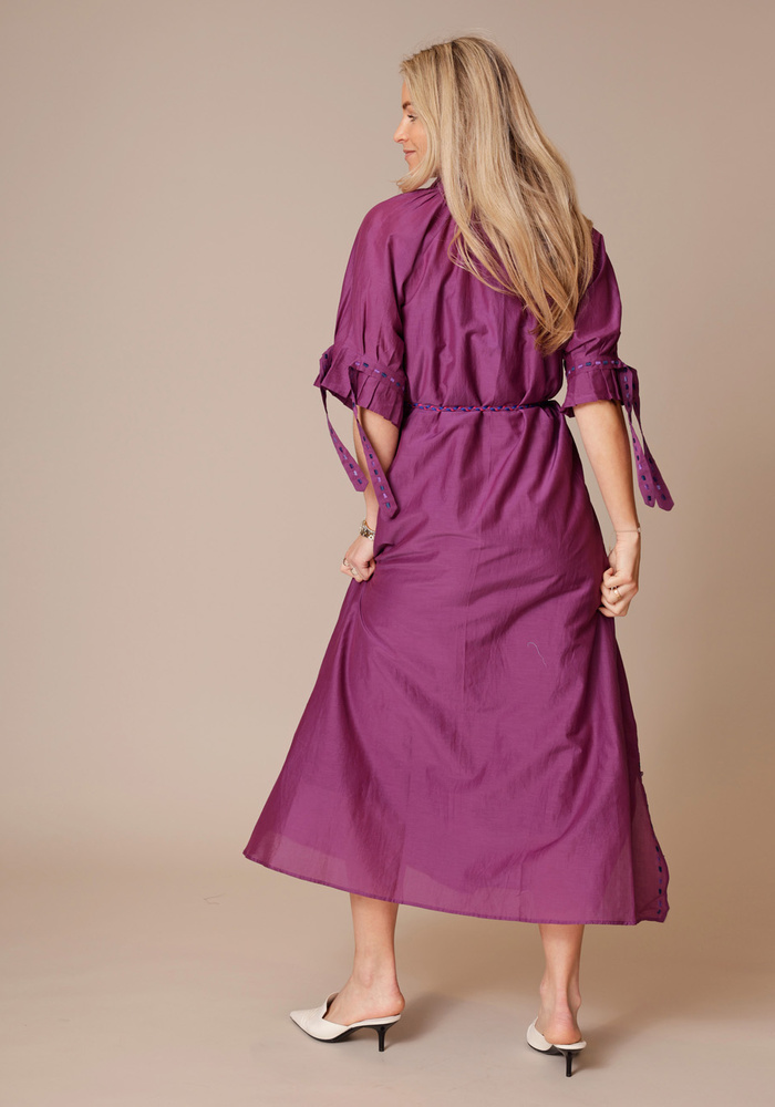 De Kylie shirt dress van Ornate is een maxi dress met korte pofmouwen en prachtige details. Komt met ceintuur en heeft steekzakjes.