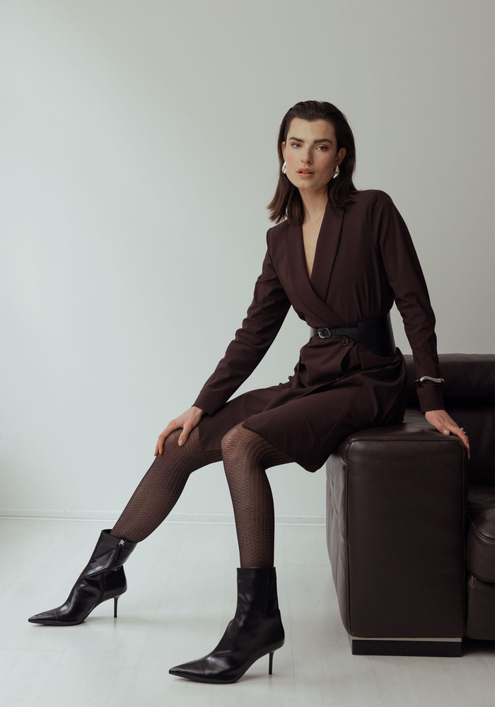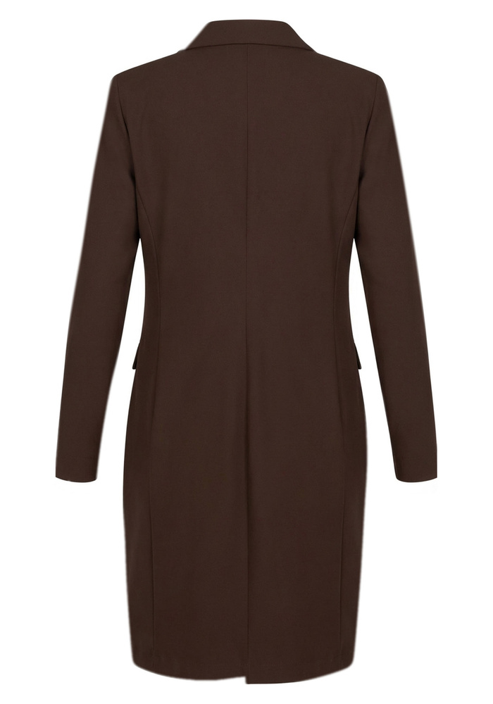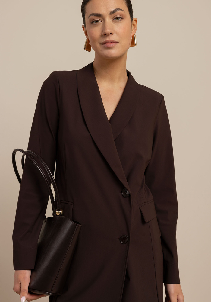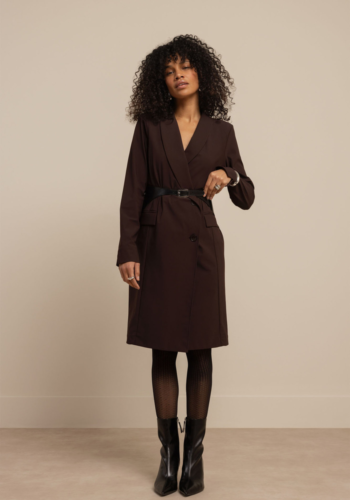 De River blazerdress van Studio Anneloes geeft je garderobe een krachtige upgrade. Deze jurk in de kleur Espresso verenigt de klassieke charme van een blazer met het comfort van een soepelvallende jurk. De rechte lijnen en oversized fit creëren een stijlvolle, vrouwelijke uitstraling waarmee je moeiteloos van een werkdag naar een diner gaat.