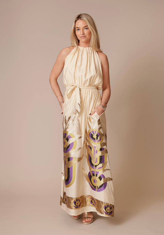 Deze halter dress van Nema heeft een prachtige jurk met open rug.