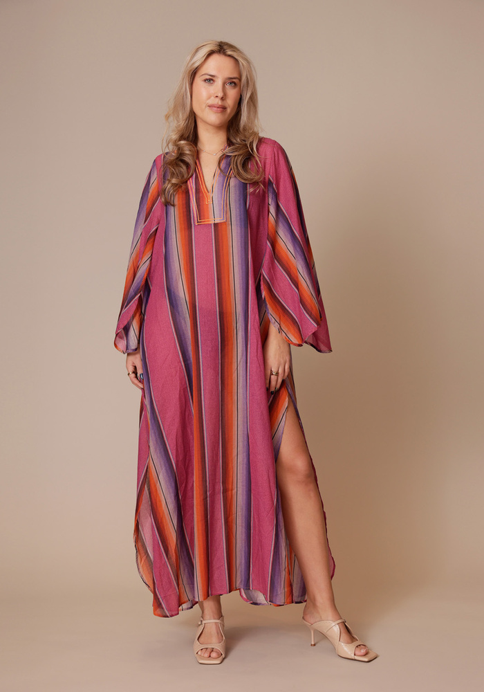 De Anastasia kaftan van The Belle Of The Beach is een soepelvallende kaftan. De jurk heeft een lange lengte en heeft lange wijde mouwen.