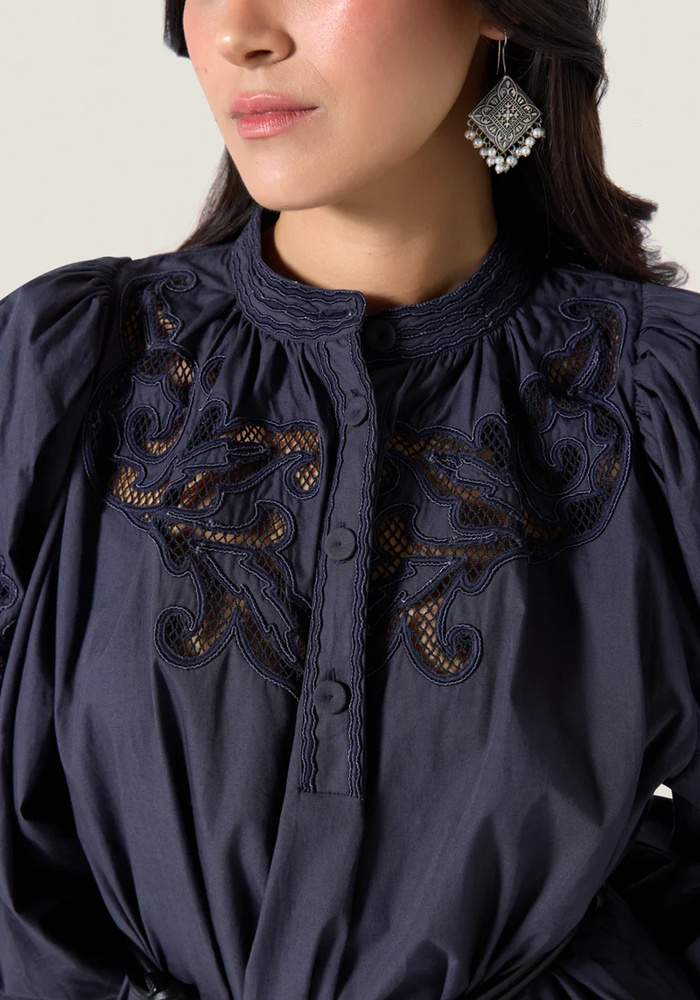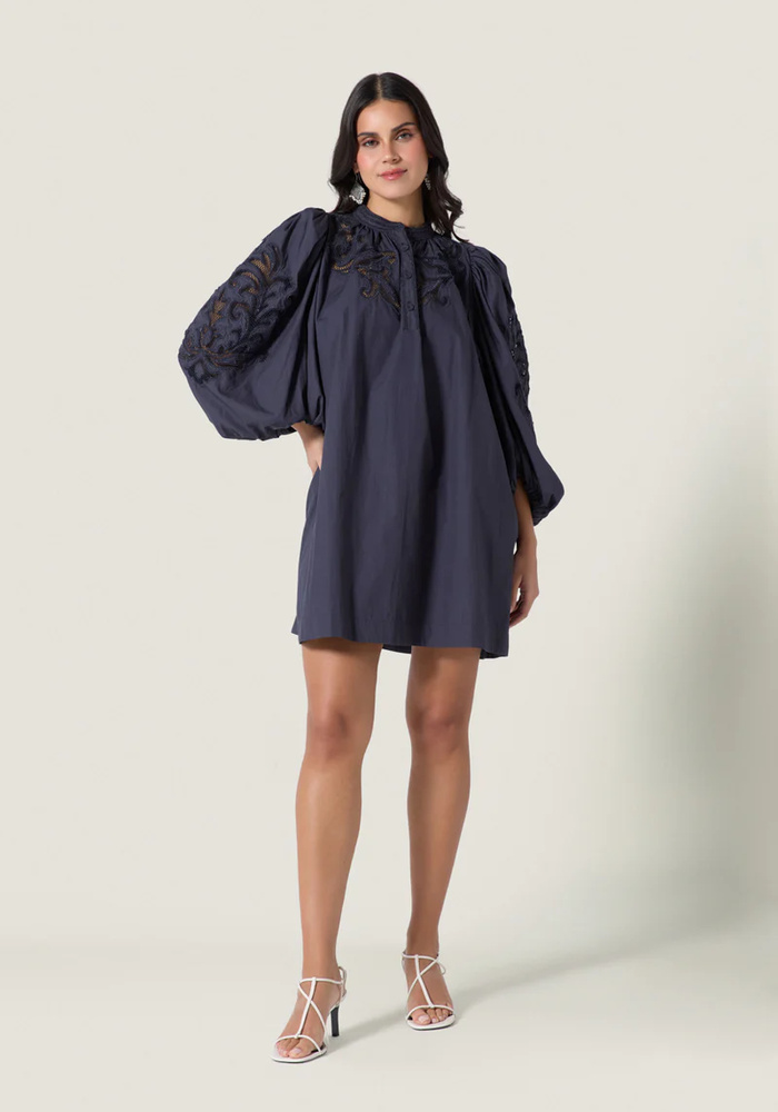Scarlett Poppies Visaya Dress is een elegante jurk met een rechte pasvorm en een comfortabele instapstijl. De katoensatijnen stof, volumineuze mouwen en verfijnde details geven de jurk een moderne en luxe uitstraling.