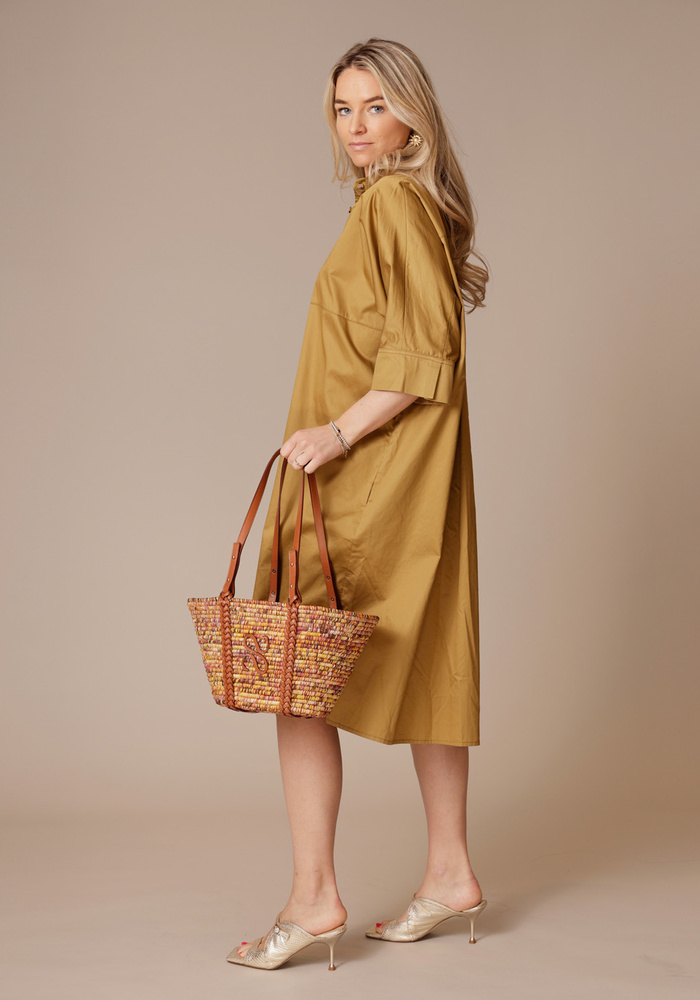 De Blouse dress van Milla is een lange jurk tot over de knieën met knoopjes.