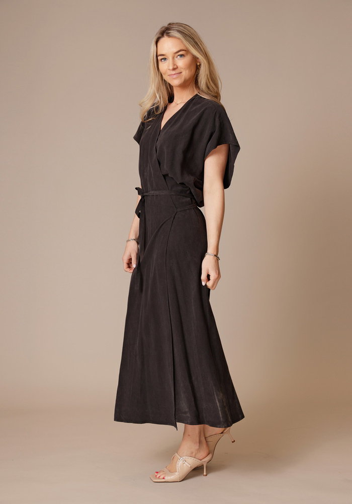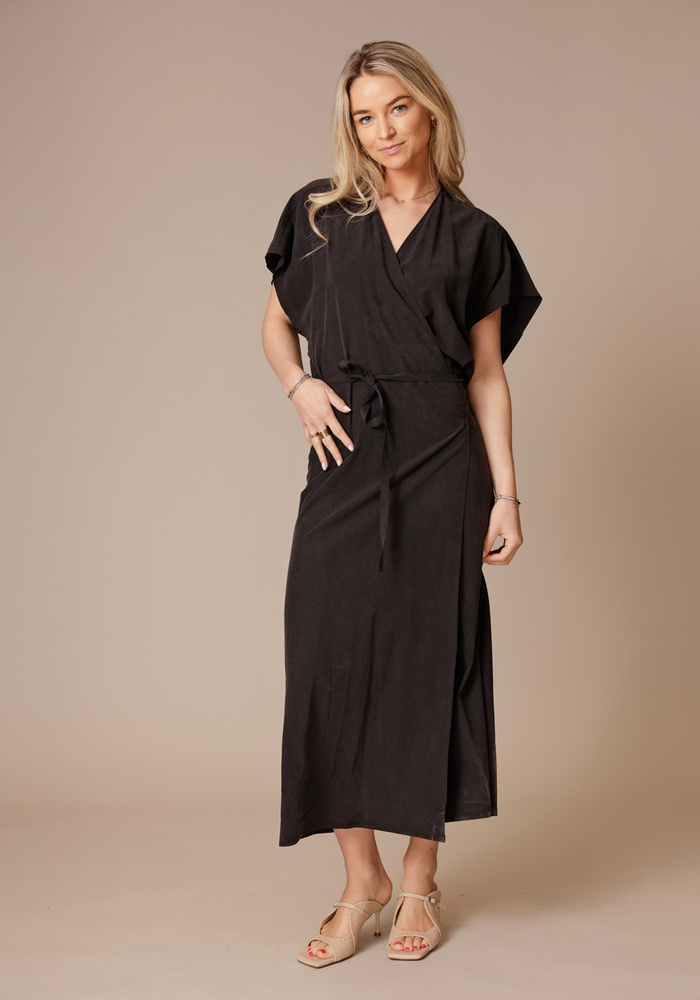 De wrap dress van Milla in de kleur charcoal is een overslagjurk met een elegante uitstraling die zorgt voor een vrouwelijke en flatterende pasvorm.
