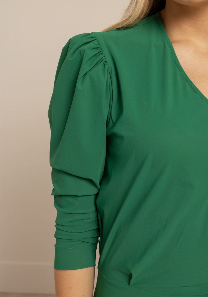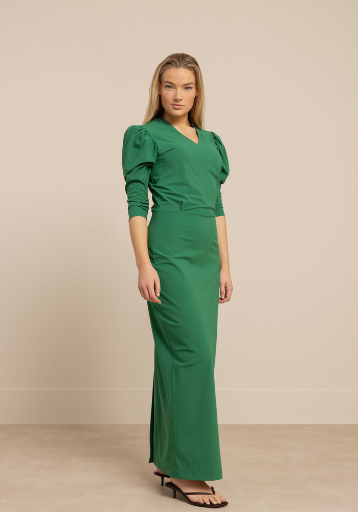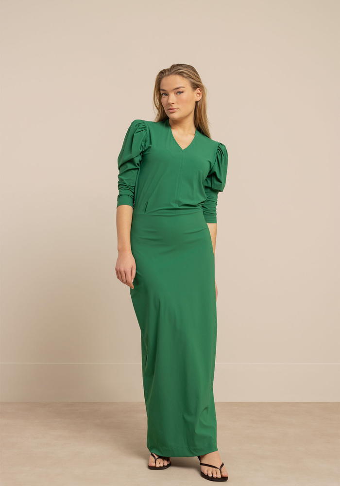 De Elsje Dress van Studio Anneloes is een stijlvolle jurk in een verfrissende Grass Green tint. Dankzij de regular fit en de Medium Travelstof zit de jurk comfortabel en flatteert ze het figuur. De pofmouwen en V-hals geven het geheel een elegante en vrouwelijke uitstraling.