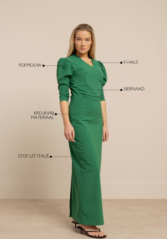 De Elsje Dress van Studio Anneloes is een stijlvolle jurk in een verfrissende Grass Green tint. Dankzij de regular fit en de Medium Travelstof zit de jurk comfortabel en flatteert ze het figuur. De pofmouwen en V-hals geven het geheel een elegante en vrouwelijke uitstraling.
