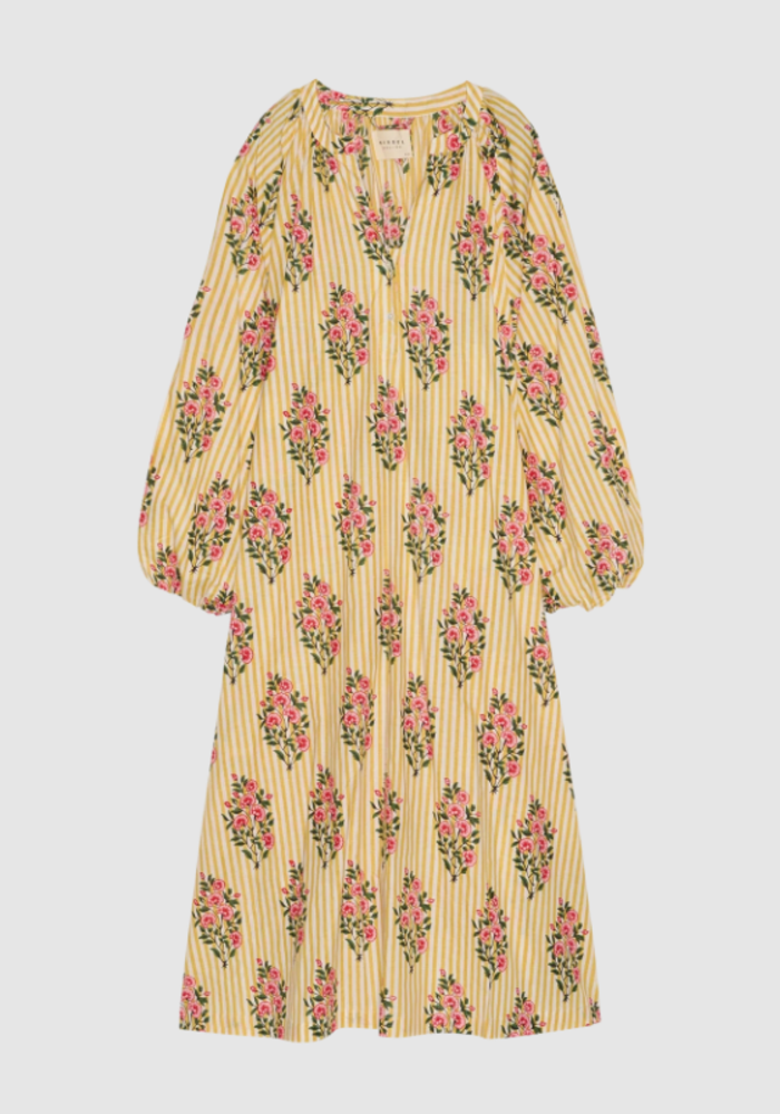 De Lara dress van Sissel Edelbo is een zomerjurk met lange mouwen en een lengte tot de knie. De jurk wordt geleverd met bijpassend ceintuur.