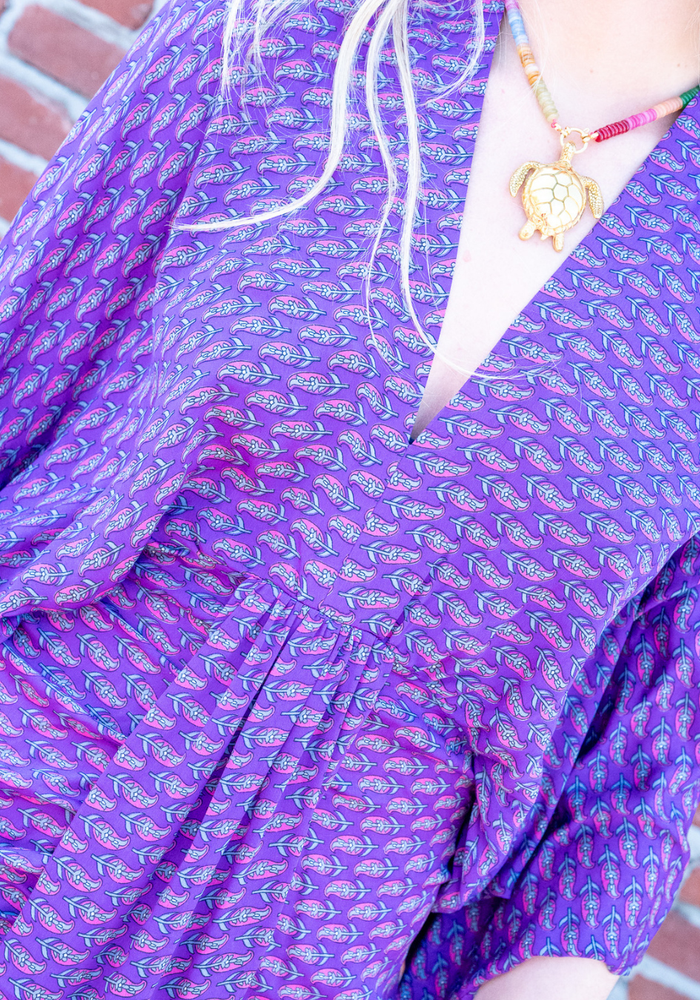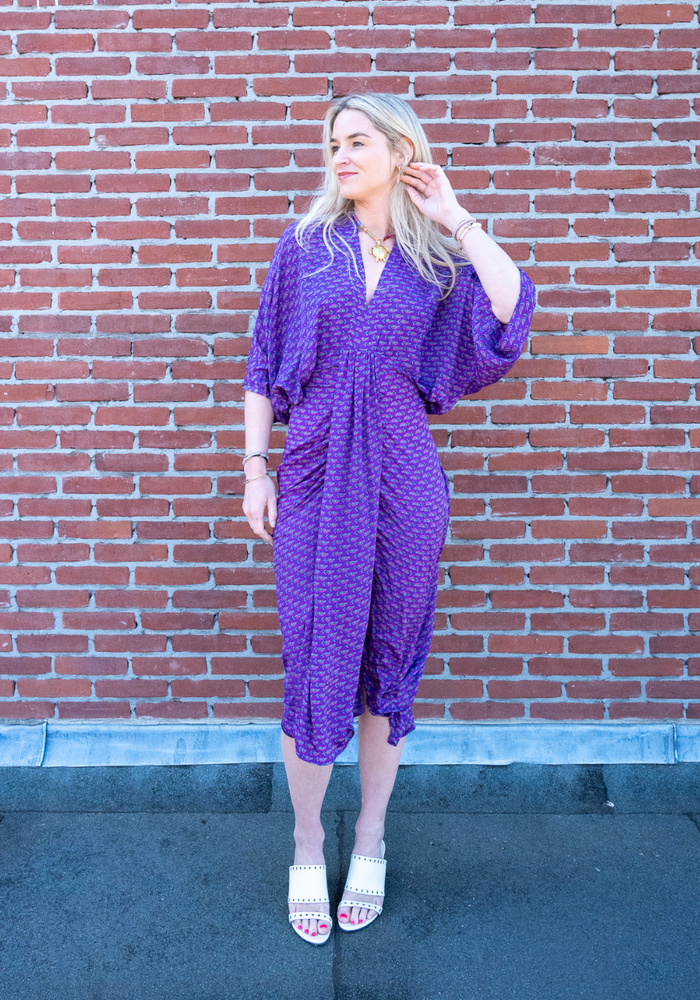 De Juno dress van Sissel Edelbo is een unieke en duurzame damesjurk met een bohemian uitstraling, waarbij elke jurk volledig one-of-a-kind is. De jurken worden gemaakt van gerecyclede, oude sari’s uit India, waardoor elk item een eigen verhaal, kleurencombinatie en karakter heeft.