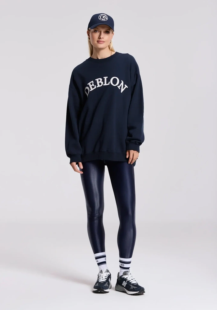 De Shine legging high van Deblon is uitgevoerd in hoogglans navy. Populaire eigenschappen, zoals de hoge dubbellaagse tailleband en de squat-proof naden. De stof biedt bewegingsvrijheid, ademend comfort en een subtiele lift.