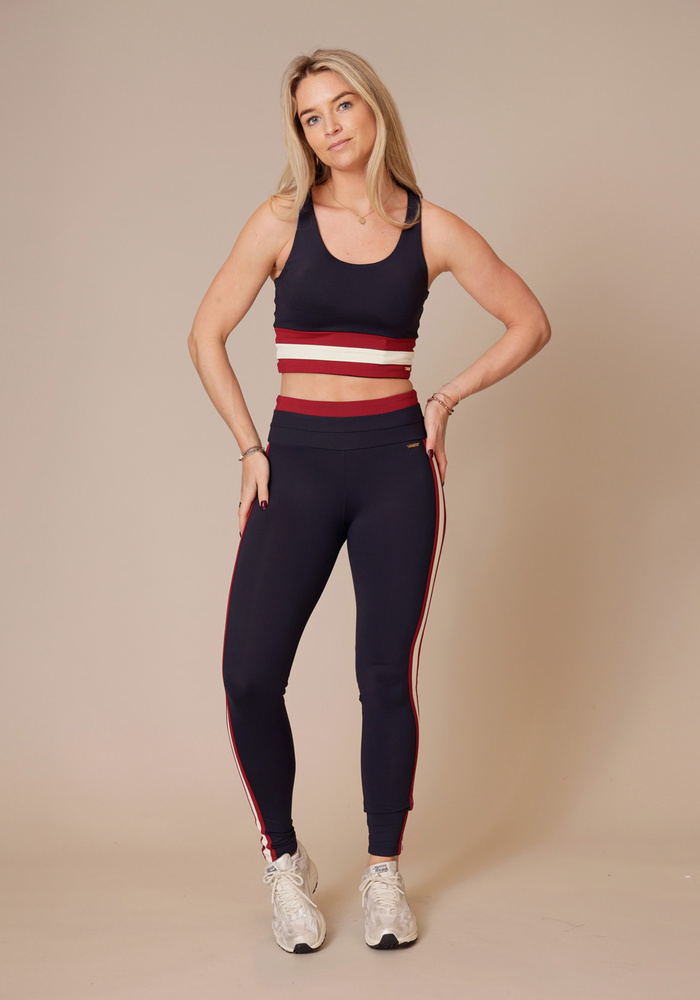 Deblon’s Liv Legging in Navy, Crimson Red & Pearl tackle je je fitness challenge in stijl. Goed om te weten: de pasvorm is identiek aan die van onze bestsellers Kate en Jade, inclusief de comfortabele hoge tailleband met flatterende afvlakkende werking. De technisch geavanceerde stretch jersey optimaliseert je workout.
