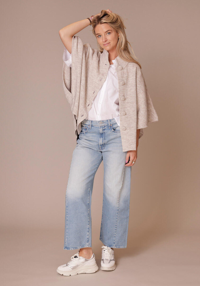 De Dello poncho van Bardou is een prachtig gebreid vest die aan de achterkant langer is. De poncho heeft vlindermouwen met knoopsluiting. Leuk om als vest aan te doen of open te dragen met een stoere blouse.