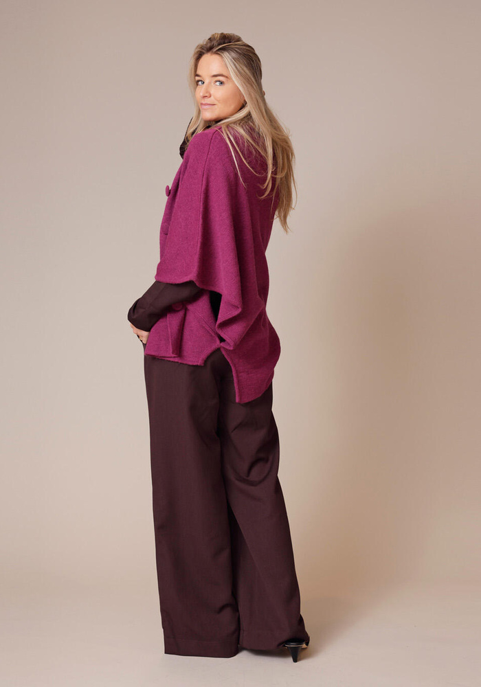 De Dello poncho van Bardou is een prachtig gebreid vest die aan de achterkant langer is. De poncho heeft vlindermouwen met knoopsluiting. Leuk om als vest aan te doen of open te dragen met een stoere blouse.