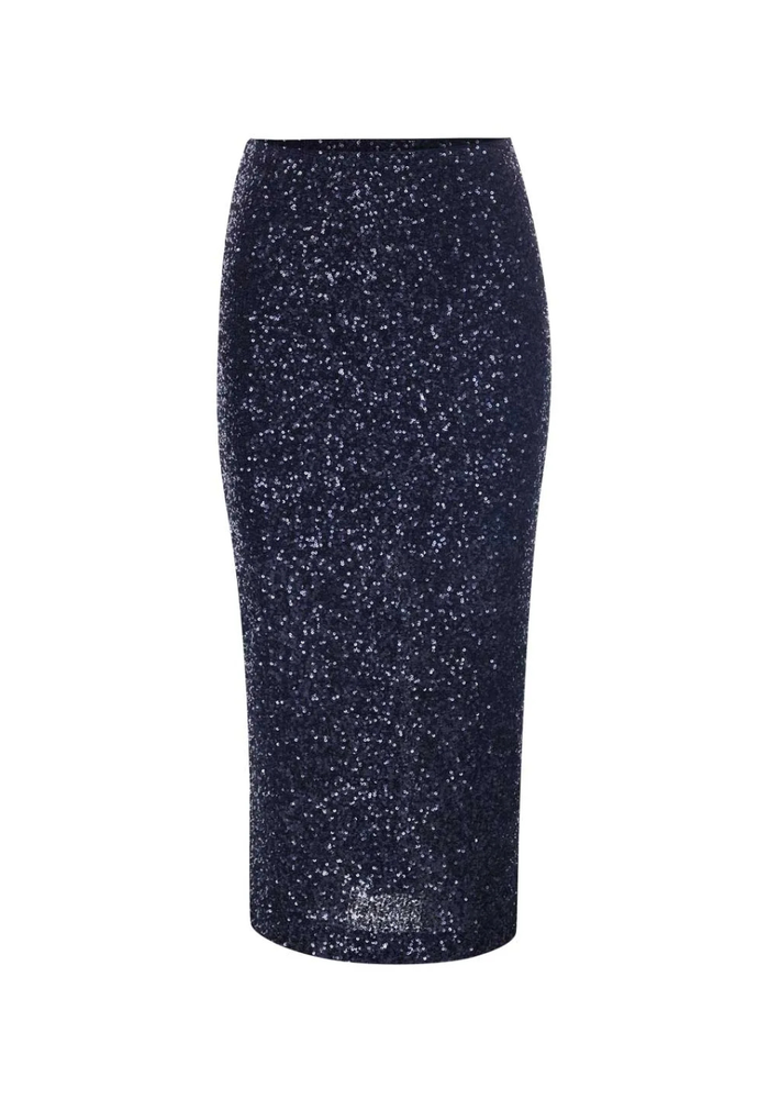 Deze rok van Vicolo is een glitterrok met een lange lengte. De rok valt hoog in de taille.