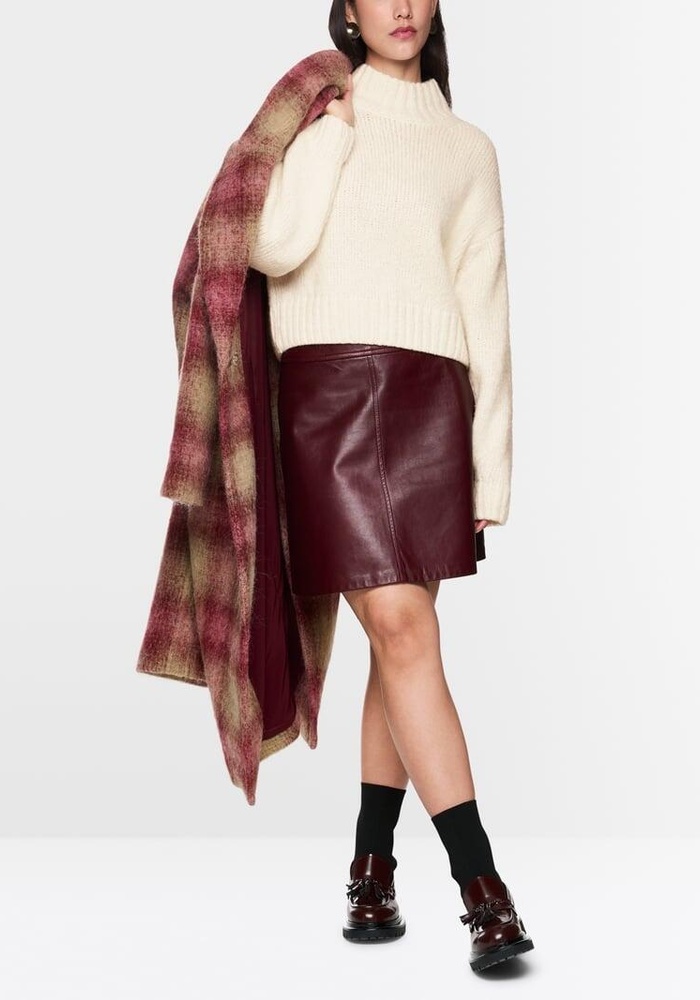 Deze knusse trui met wijde mouwen en een opstaande kraag van Marccain zorgt voor ultiem comfort. Het alpaca-aandeel maakt hem bijzonder zacht, terwijl de raglanmouwen en de losse, ballonachtige snit voor een moderne pasvorm zorgen.