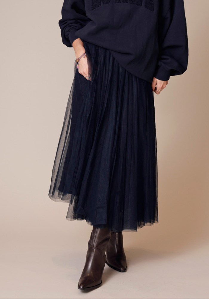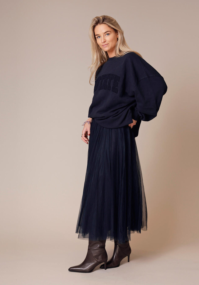 Deze mooie zwierige rok van Noman'sland heeft een elastische tailleband.