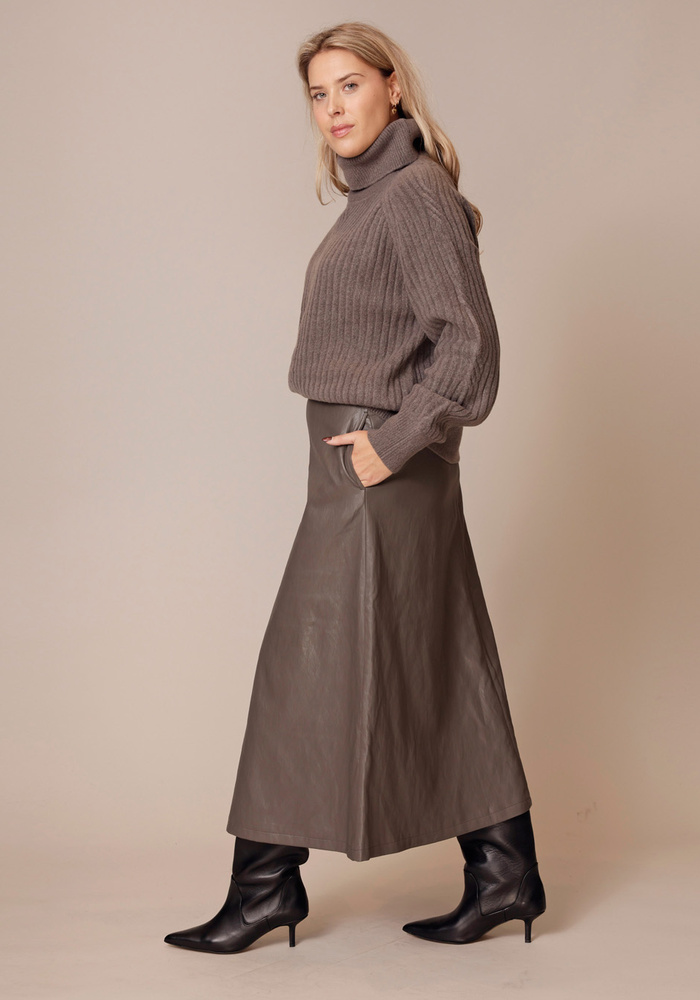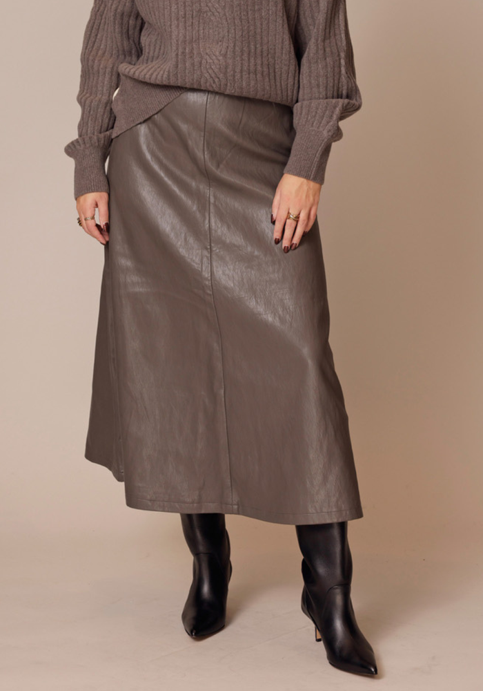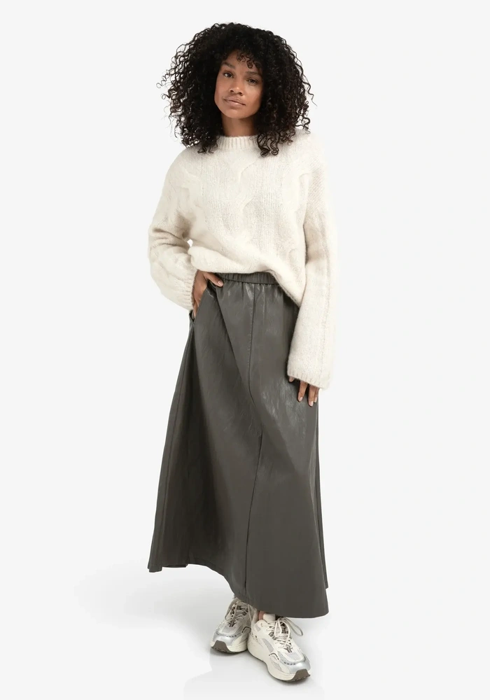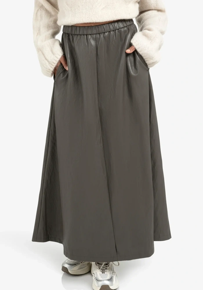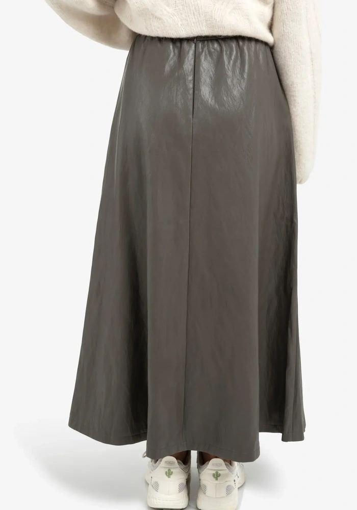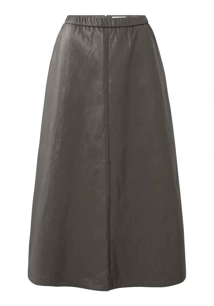 De midi skirt van Yaya is een midi rok van imitatieleer. De rok heeft een elastische band in de taille.