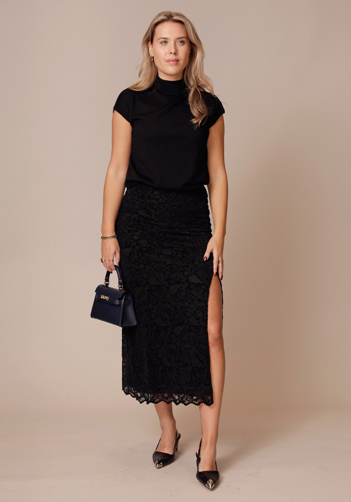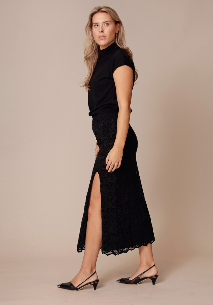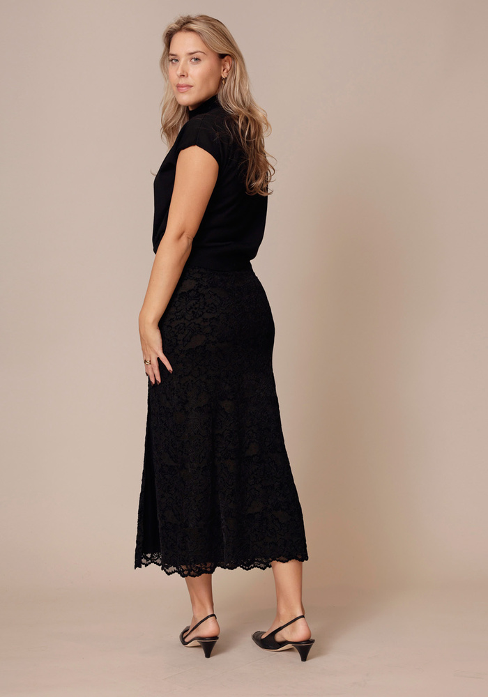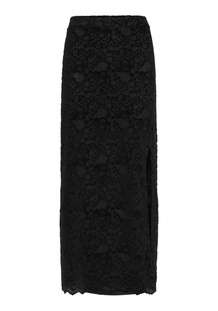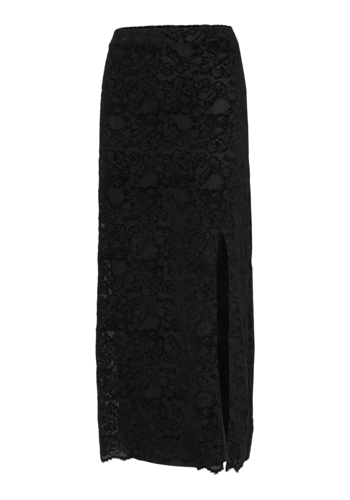 De Dania lace skirt van Rosemunde is een lange kanten rok. De rok heeft een elastische band in de taille en heeft een split aan de zijkant.