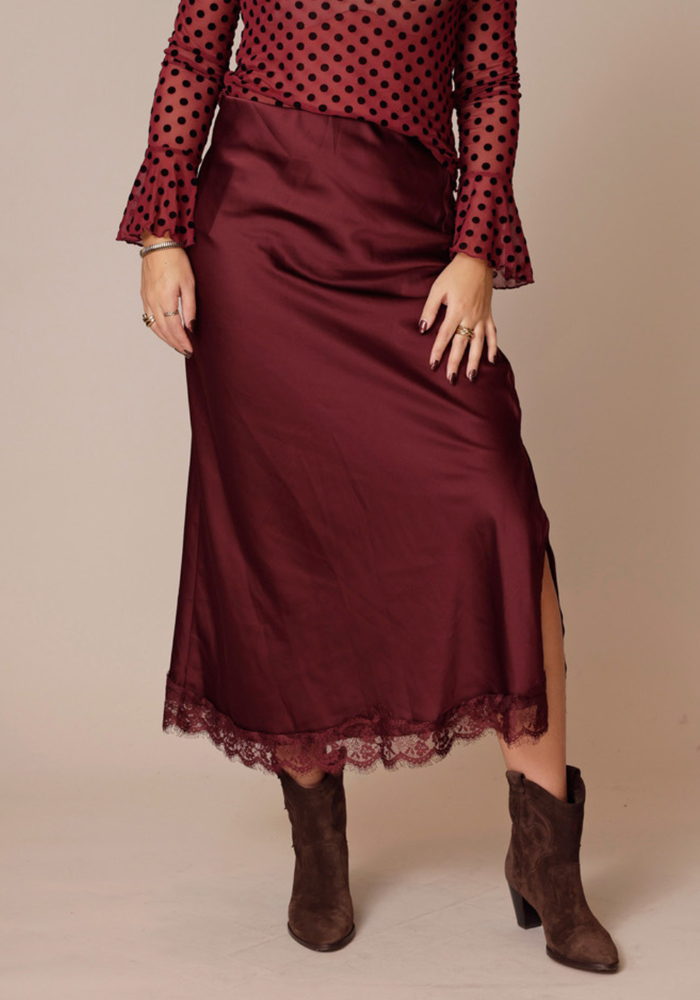 De Lace skirt van Gentle is een lange rok met kanten details. De rok heeft een elastische band in de taille.