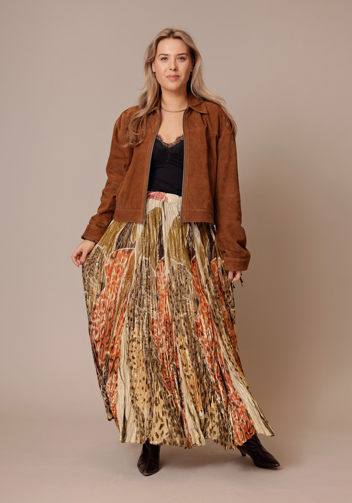 De Justy skirt van Mes Demoiselles is een elegante vrouwelijke rok met glanzende afwerking. De rok heeft een elastische band in de taille.