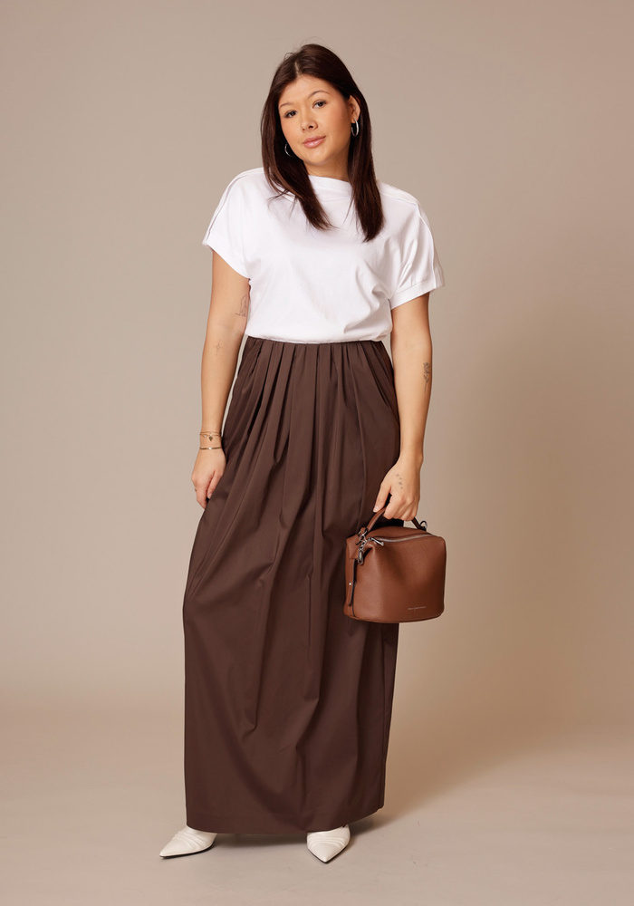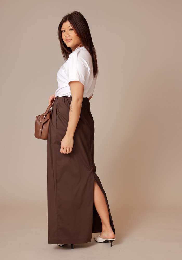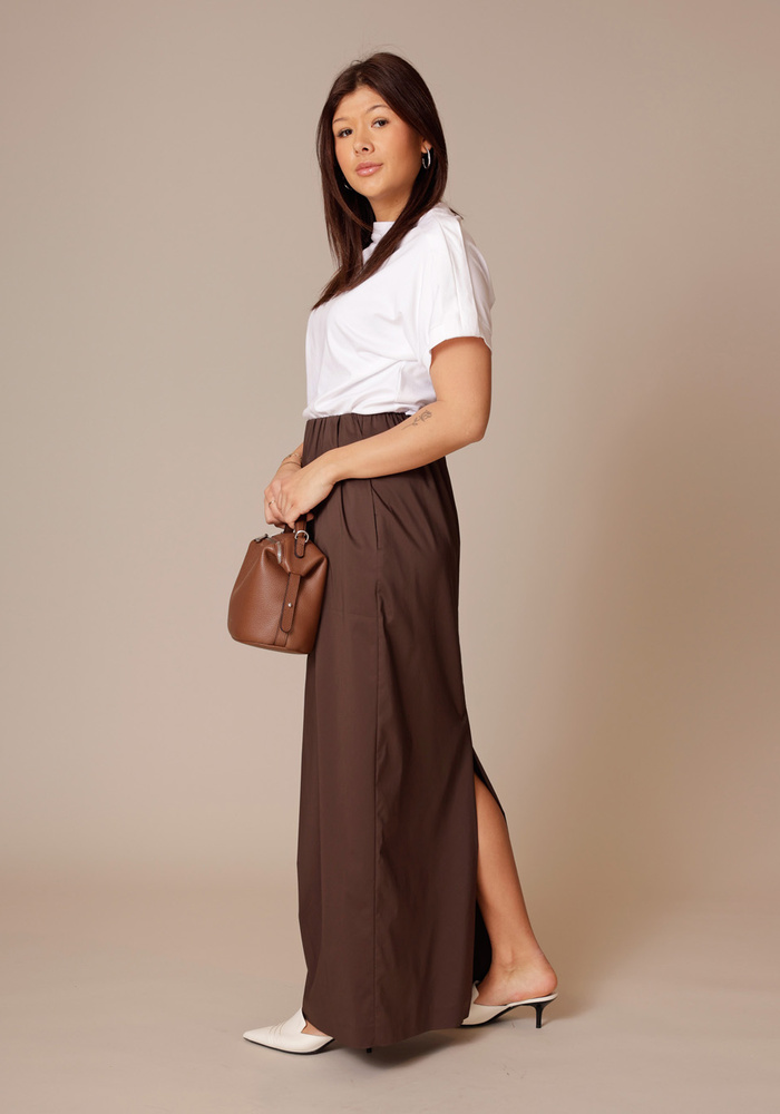 De Long CO skirt van FFC Fashion is een lange rok met een split aan de achterzijde. De rok heeft een elastische band in de taille.