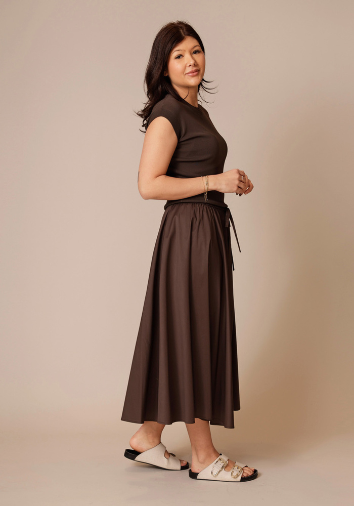 Deze rok van FFC Fashion is een rok met maar één steekzak. De rok heeft een elastische band in de taille.
