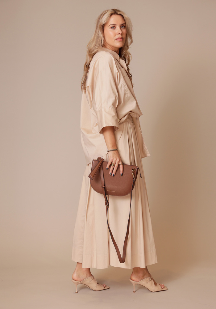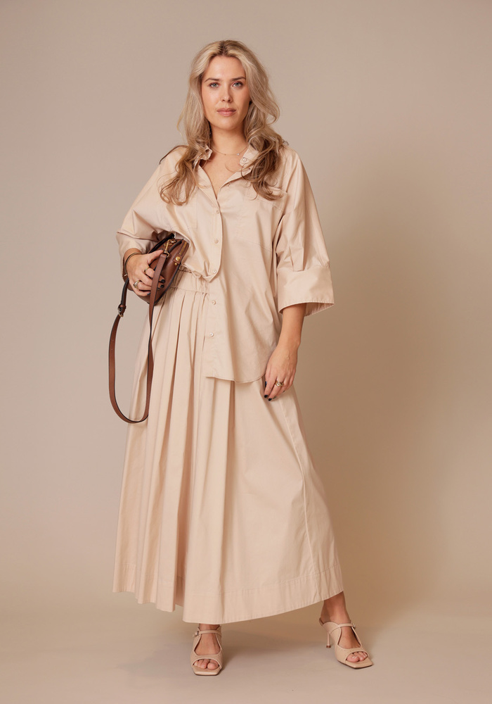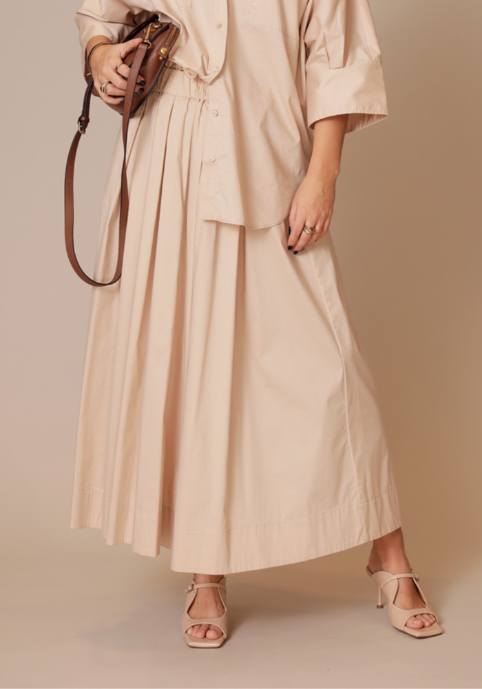 Deze rok van FFC Fashion is een heerlijk zwierige rok met maar één steekzak. De rok heeft een elastische band in de taille.