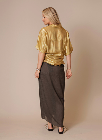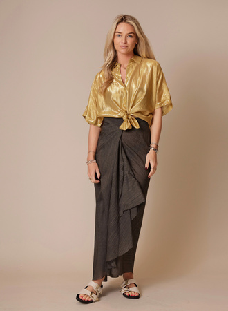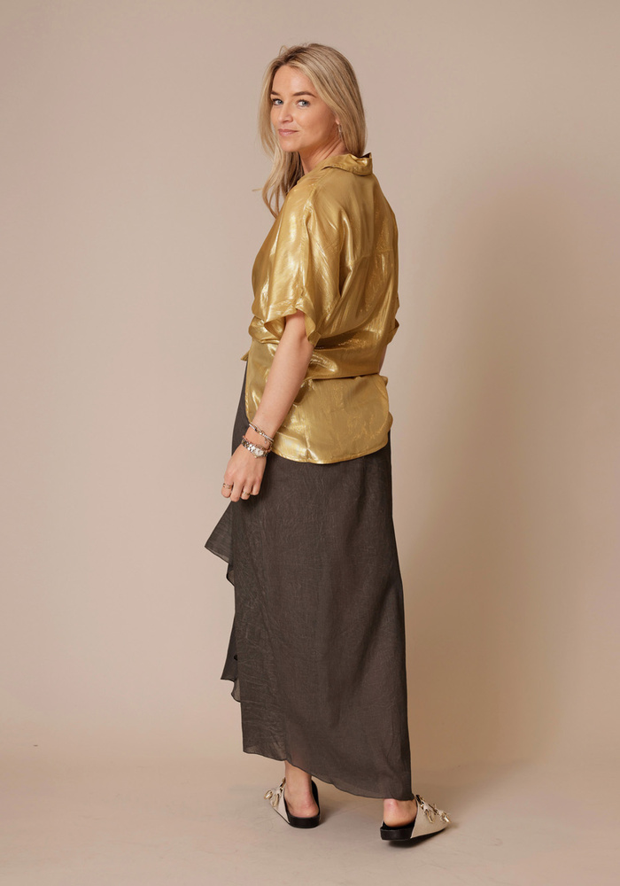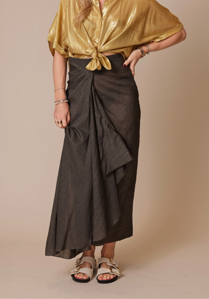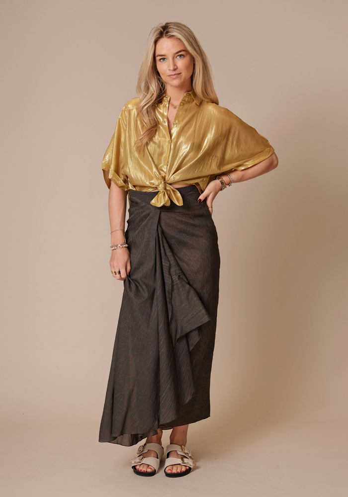 Midi-rok van pigmentgeverfd katoen met een rechte pasvorm en plooien vooraan die zorgen voor extra beweging. De onzichtbare ritssluiting achteraan geeft de rok een strakke en moderne look.