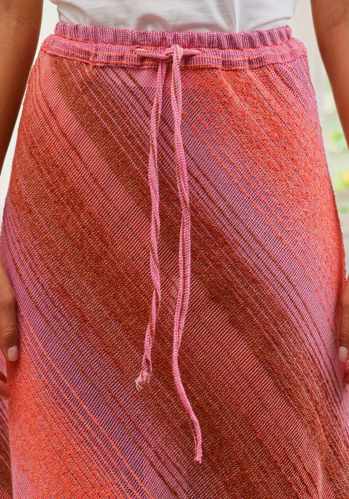 De Praia Skirt in Sundown van Sea Me Happy is een elegante maxi-rok met een tijdloos strepenpatroon en een luchtige, vrouwelijke uitstraling. De elastische tailleband met strikdetail zorgt voor een comfortabele pasvorm en maakt de rok perfect voor zowel casual als zomerse momenten.