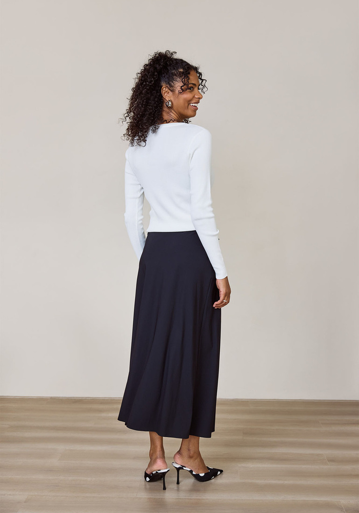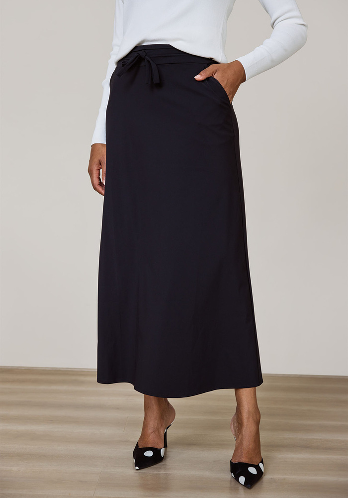 De Chloe skirt van Studio Anneloes is een elegante maxi rok met een vloeiende lengte en een comfortabele drawstring tailleband. Gemaakt van Medium Travelstof in zwart, is dit een veelzijdig en stijlvol item voor elke gelegenheid.