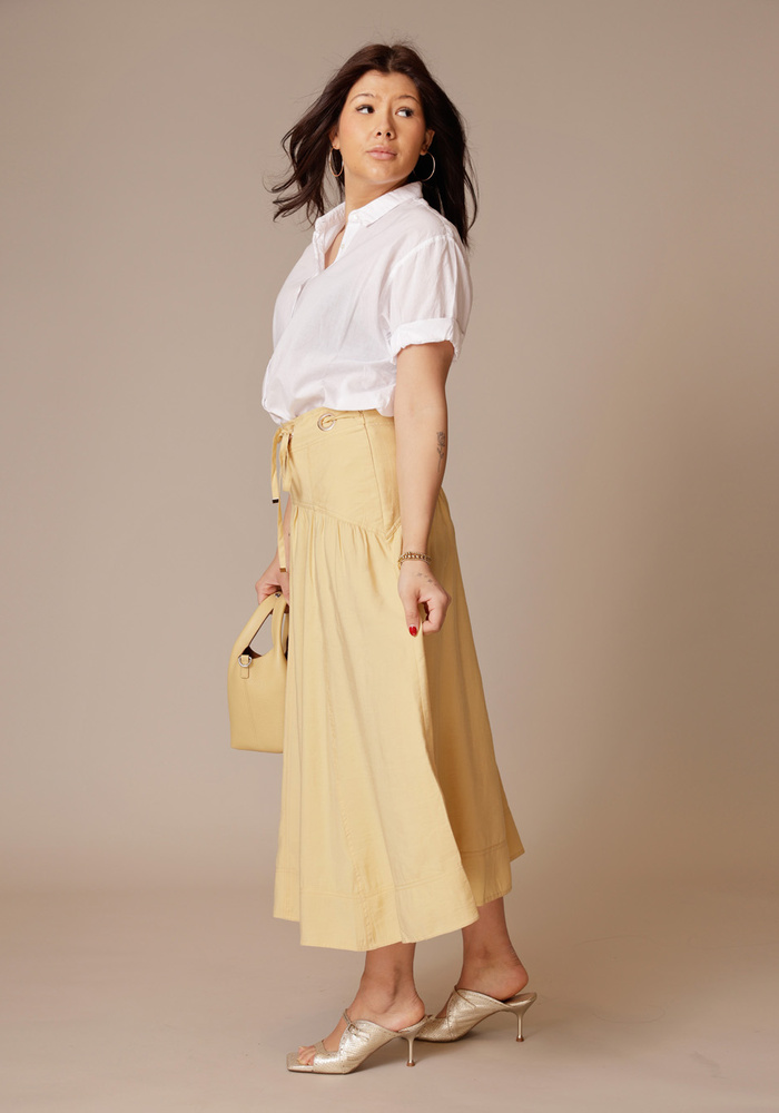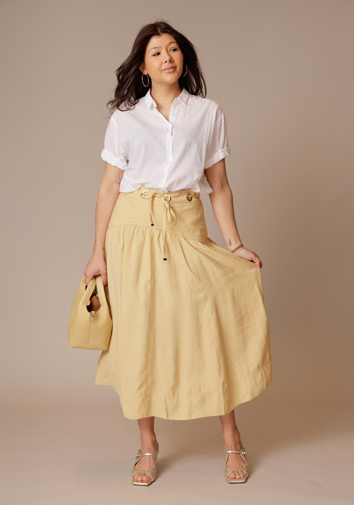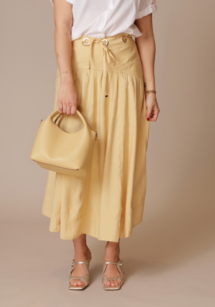 De Donia skirt van Ba&sh is een lange zwierige rok. De rok heeft een ritssluiting aan de zijkant en is te tailleren in de taille.