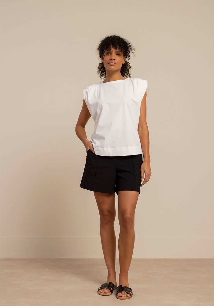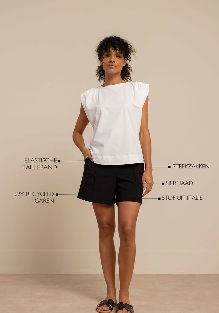 De Lisanne short van Studio Anneloes is een stijlvolle short met een comfortabele look. De kortere pasvorm in combinatie met de stevige Heavy Travelstof zorgt voor een flatterend silhouet en een fijne, aansluitende fit. De elastische tailleband biedt extra draagcomfort, terwijl de subtiele siernaad het ontwerp een elegante touch geeft. Een veelzijdig item dat perfect is voor zonnige dagen.