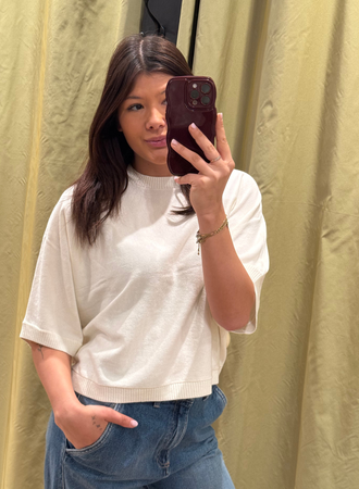 Yaa - Grofgebreide trui korte - Kit Beige