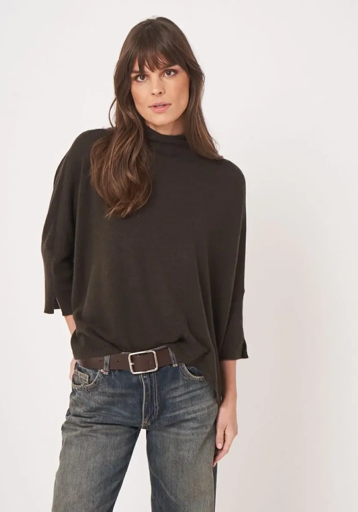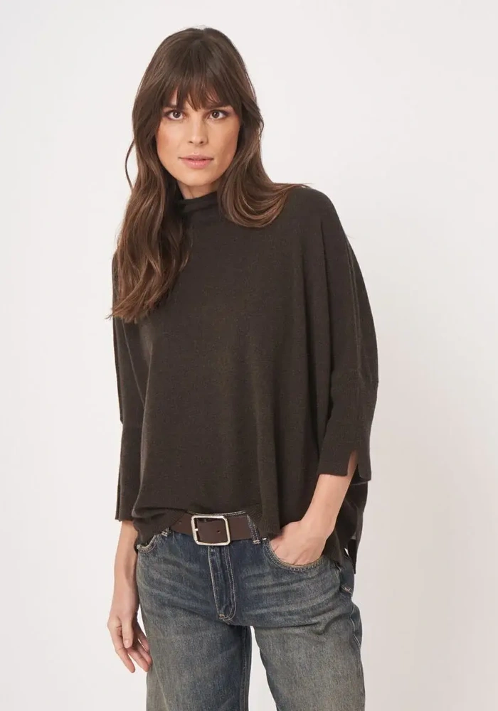Deze elegante poncho is gemaakt van een zachte, OCS-gecertificeerde biologische cashmere mix en combineert comfort met een verfijnde uitstraling. Het rechtgebreide model valt wijd en ruimvallend, met afhangende schouders voor een relaxte, stijlvolle look.