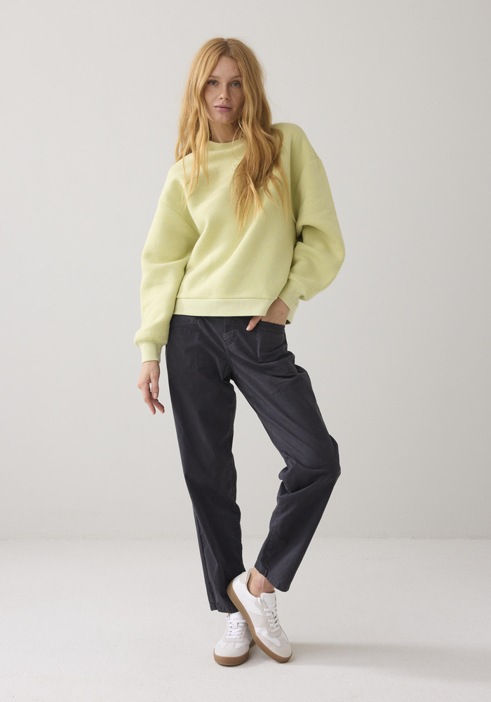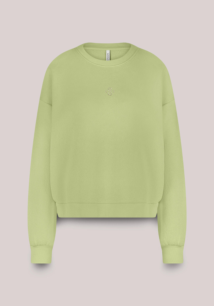 Comfortabele sweater met casual fit, ronde hals en lange mouwen. De voorkant is stijlvol afgewerkt met een Summum-logo van strass-steentjes.