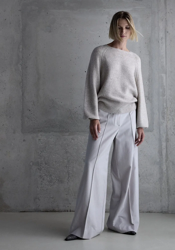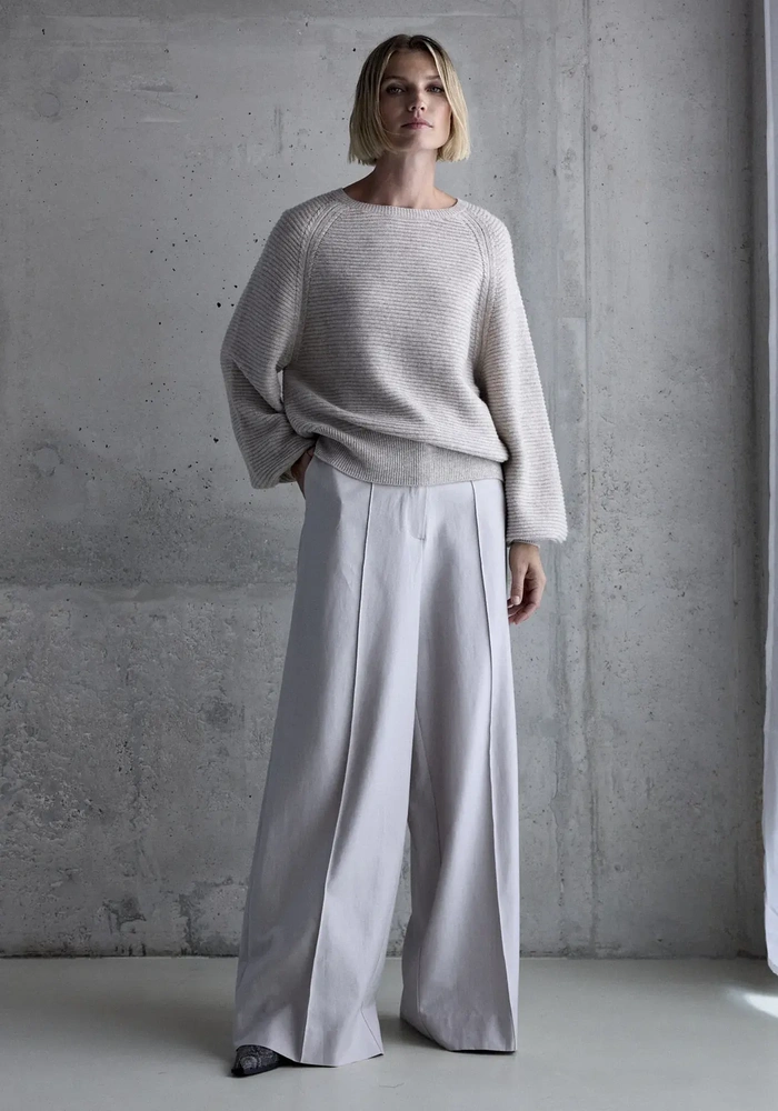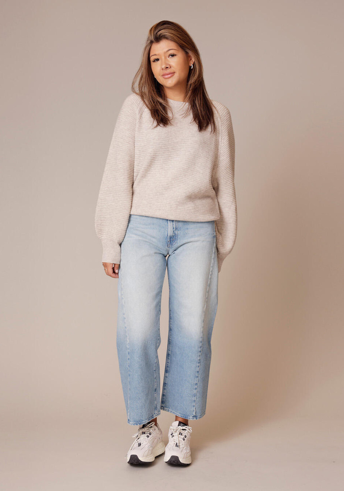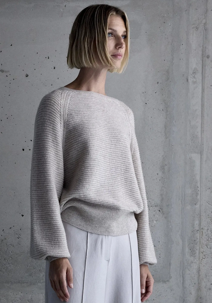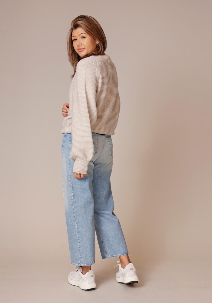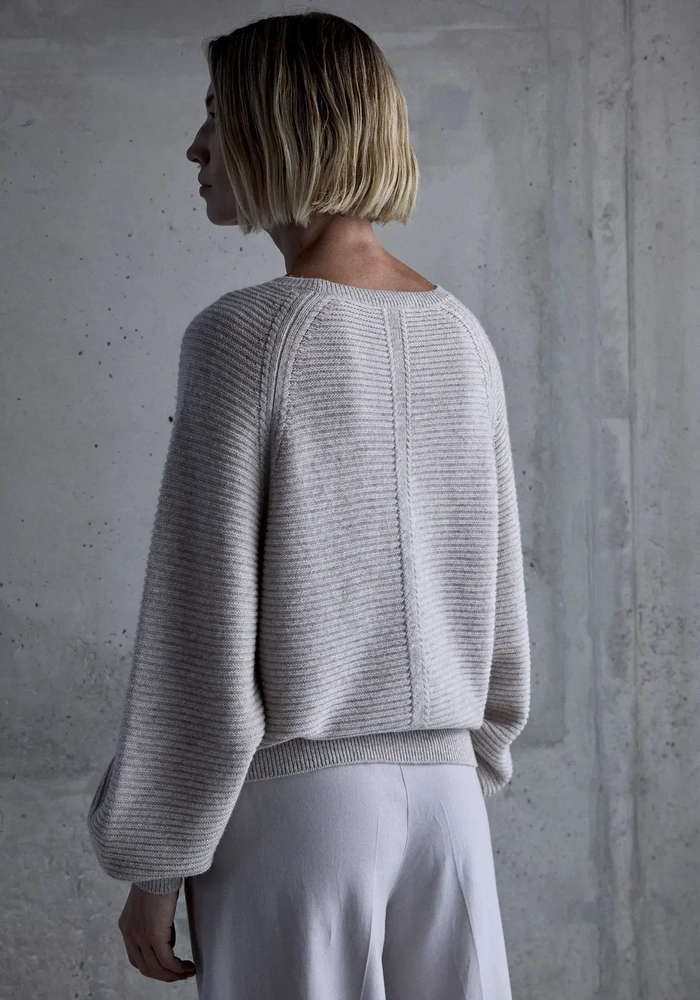 Deze Gisela pullover van Femmes du Sud is een heerlijk zachte trui gemaakt van wol met cashmere, met een subtiele lurex draad in de ballon mouwen.