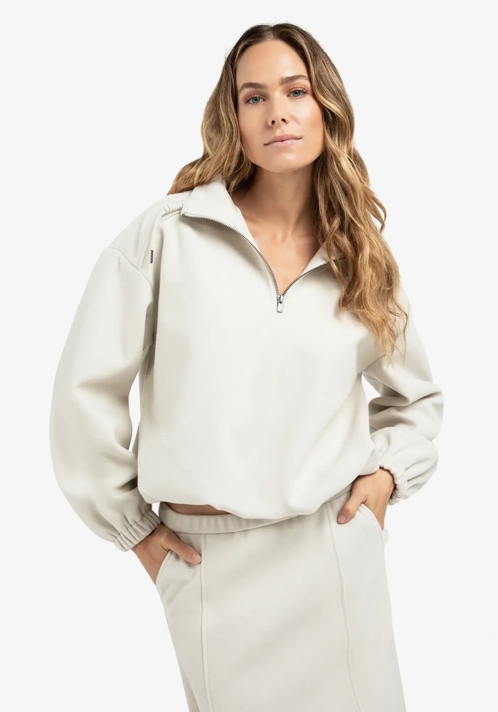 De Balloon sweater van Yaya is een oversized sweater met ballonmouwen. De sweater heeft een ritssluiting in de hals.