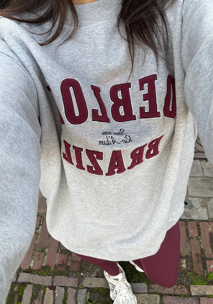 De Puck sweater van Deblon is een grijze sweater met een oversized pasvorm. De trui valt wat langer en heeft lange mouwen en een ronde hals.