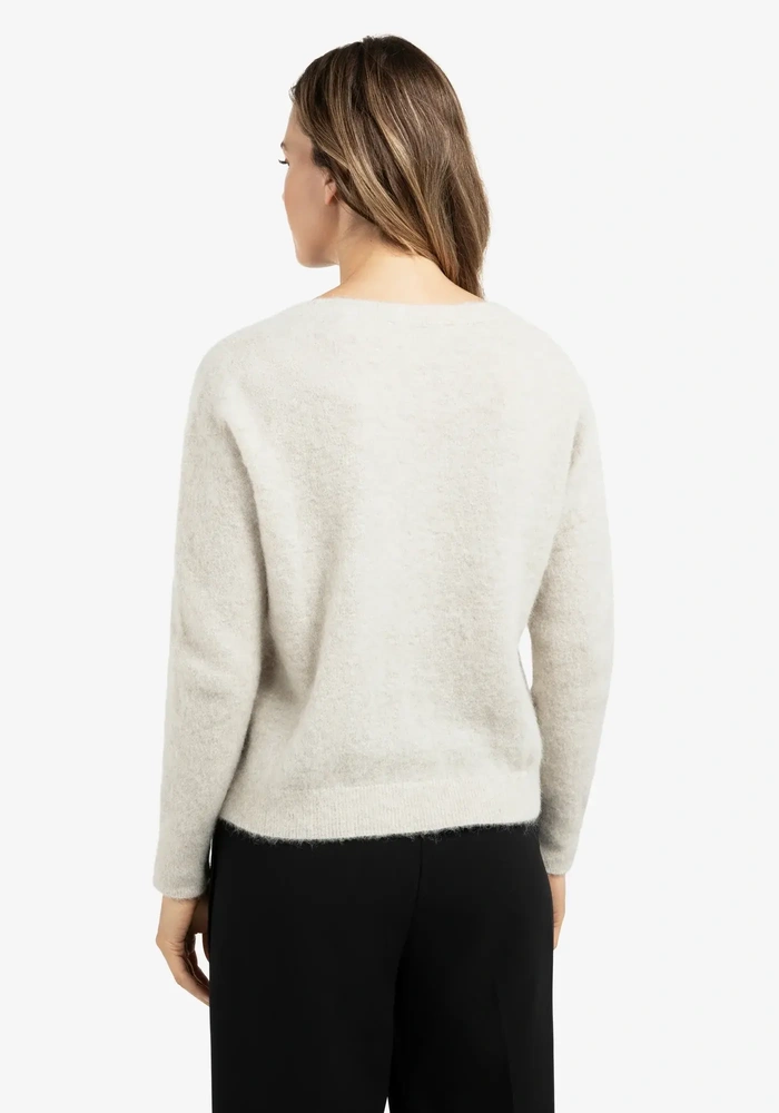 Elegante trui van een fijne wolmix met een zachte structuur. Voorzien van een V-hals, lange mouwen en een rechte pasvorm. Subtiele afwerkingen geven een verfijnde, stijlvolle uitstraling.